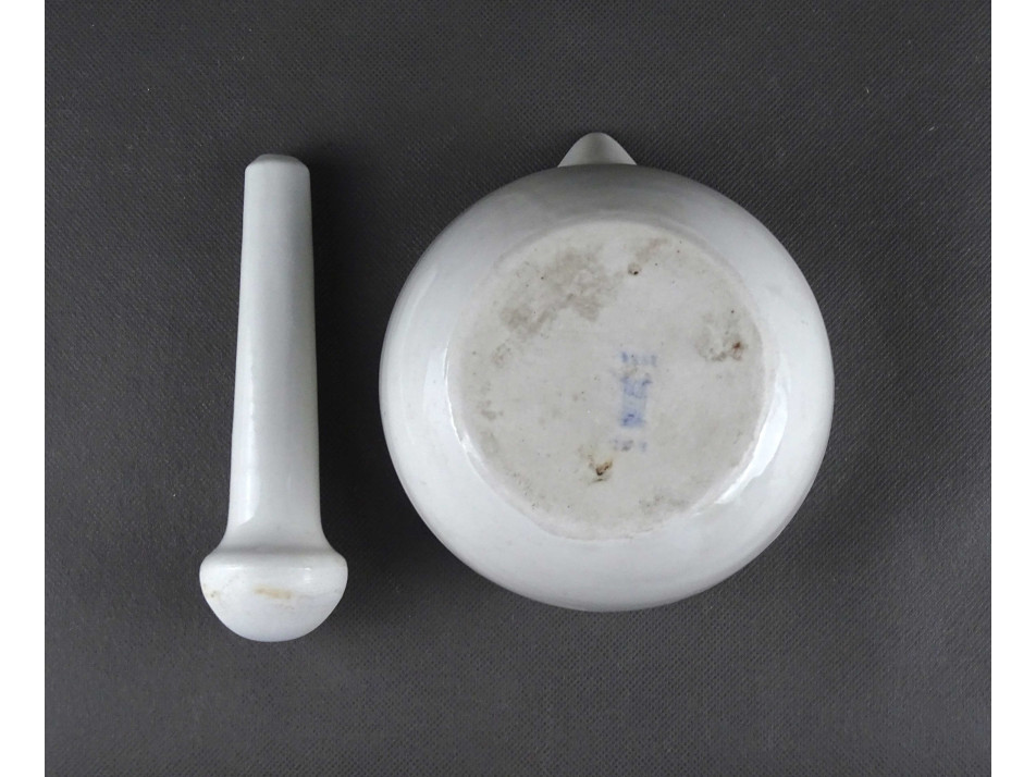 Régi, hibátlan állapotú, Zsolnay porcelán gyógyszerészeti, patika mozsár törővel. Alján kék Zsolnay márkajelzés, lásd fotó.