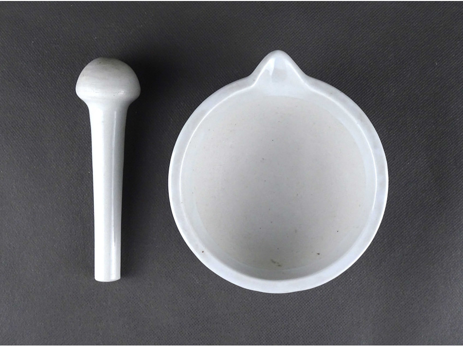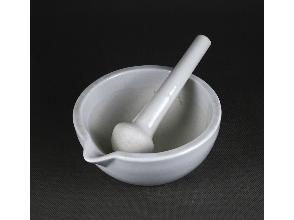 Régi, hibátlan állapotú, Zsolnay porcelán gyógyszerészeti, patika mozsár törővel.