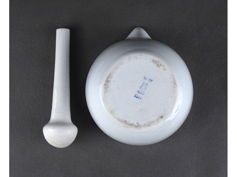 Régi Zsolnay porcelán patika mozsár gyógyszerész mozsár törővel 13.7 cm