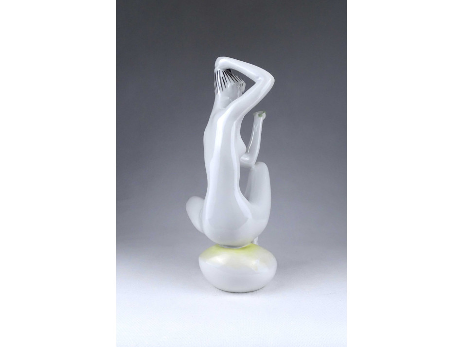 Zsolnay porcelán fésülködő akt szobor Török János tervezte 22.5 cm