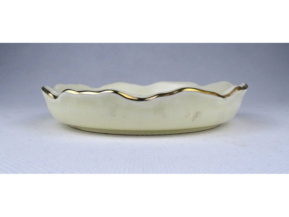 Szép állapotú, gazdagon aranyozott virágmintákkal és pillangóval díszített hamutál, hamus. A hamutál pereme restaurátor által szakszerűen javított.