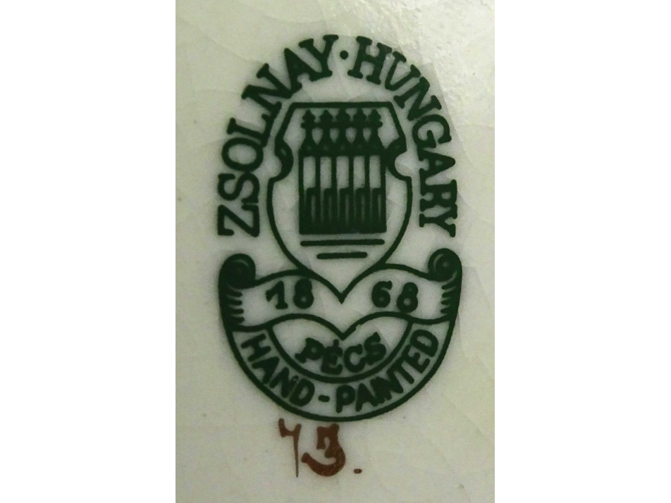 Alján zöld öttornyú Zsolnay márkajelzés:
