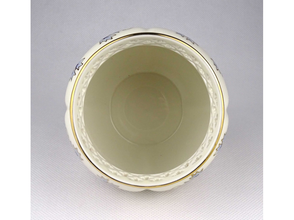 Hibátlan állapotú, gazdagon aranyozott búzavirág mintákkal díszített porcelán kaspó, áttört aranyozott szegéllyel.