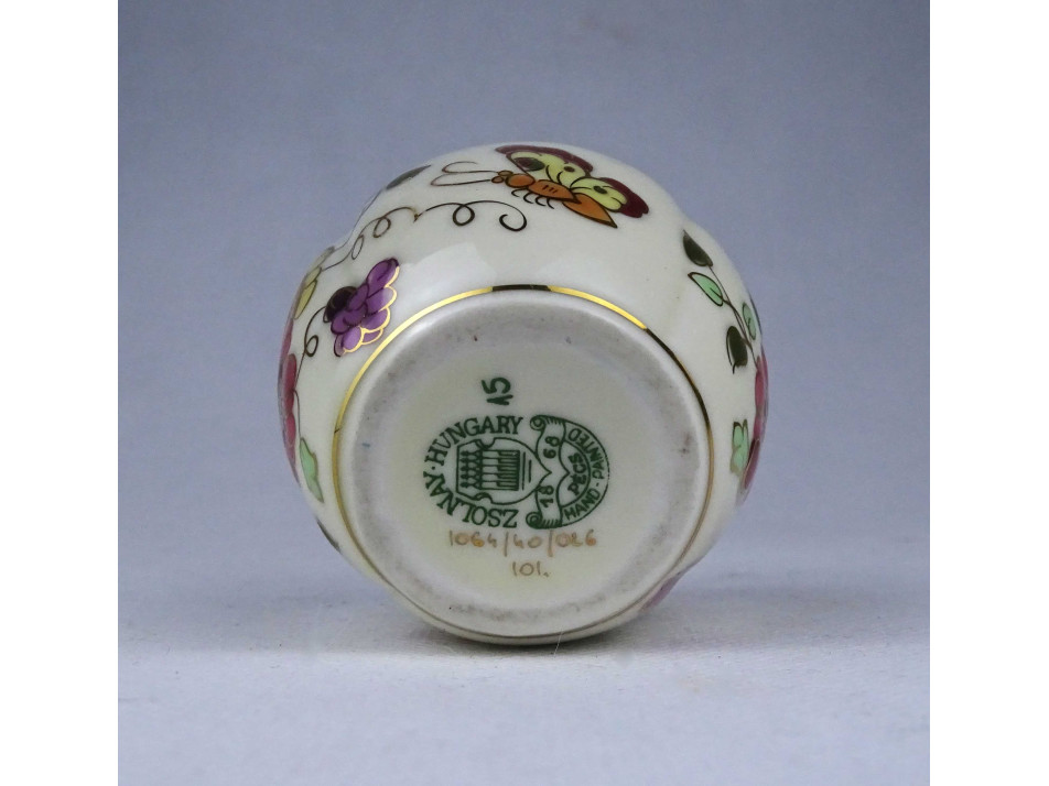 Kisméretű vajszínű pillangós Zsolnay porcelán gerezdes kaspó váza 5.8 cm