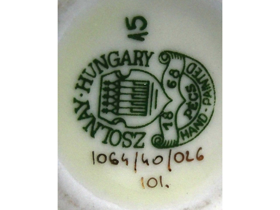 Alján zöld színű Zsolnay öttornyú márkajelzés: