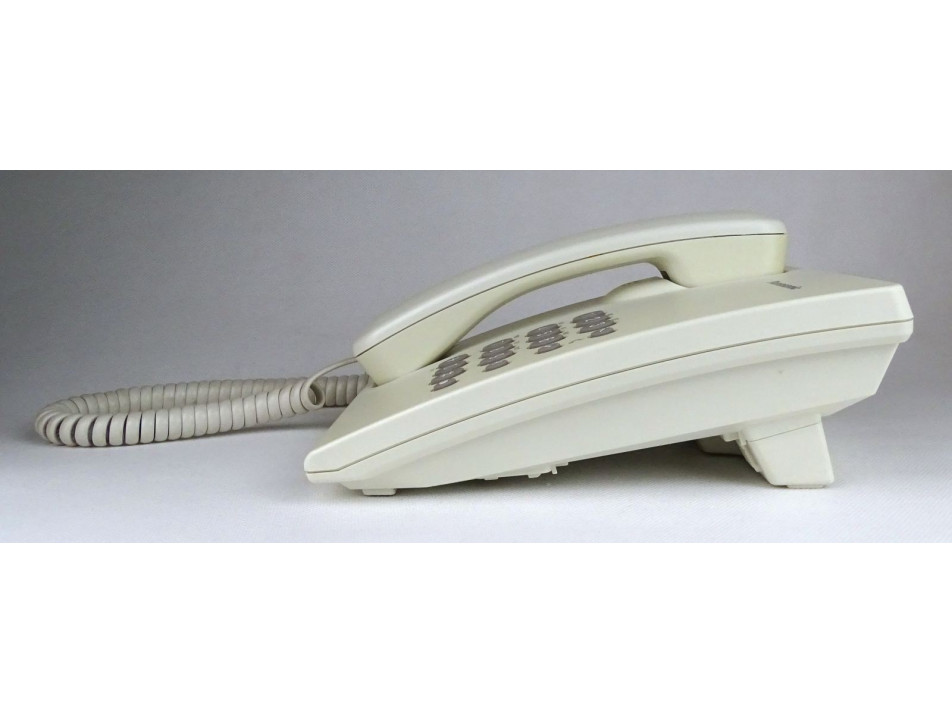 Szép állapotú, tört fehér színű, falra szerelhető, nyomógombos vezetékes telefon.