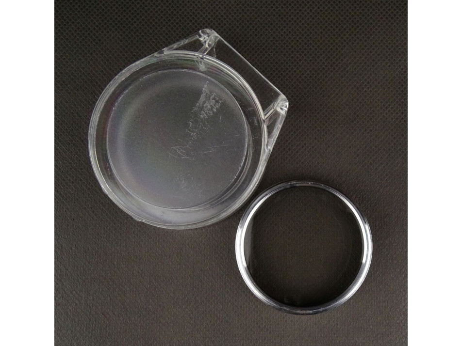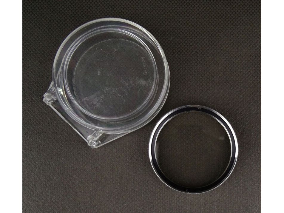 Régi, eredeti tokjában található fényszűrő lencse. Alumínium keretben üveg lencse.