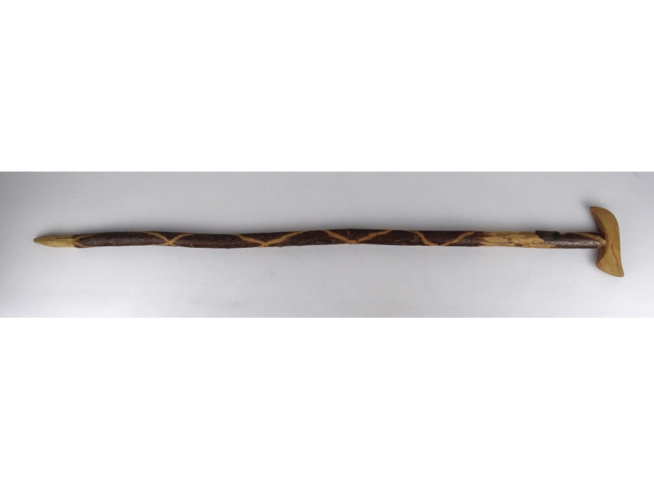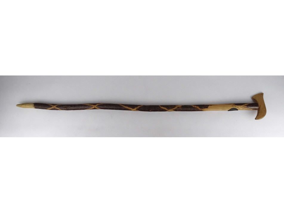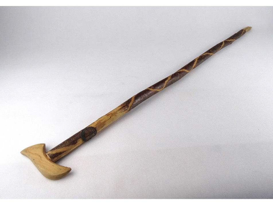 Régi, szép állapotú, faragott nyelű fokos-fejes sétabot, görbebot, túrabot. A boton található egy régi "Kékestető" feliratú réz címke.