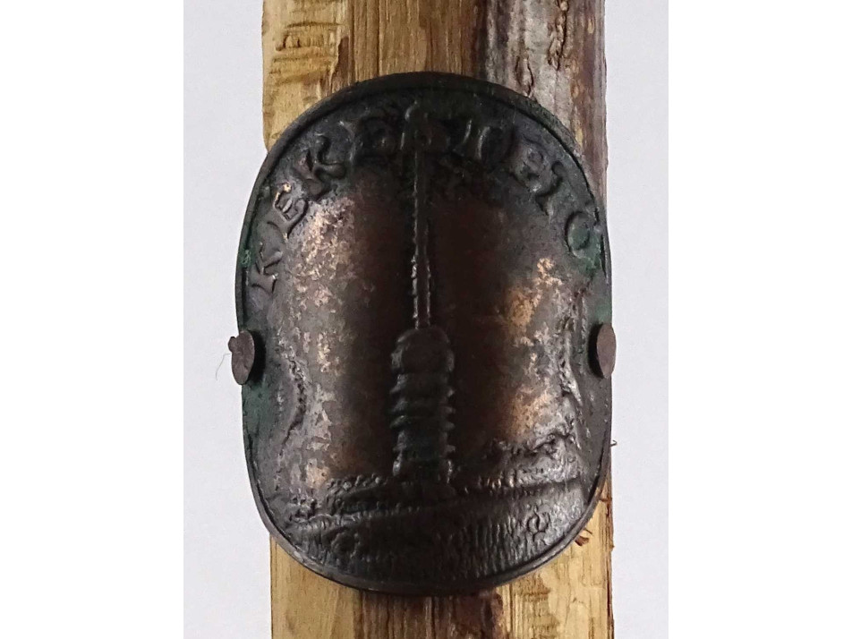 Régi faragott nyelű, fokos fejű túrabot, sétabot, "Kékestető" címkével