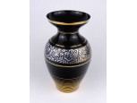 Nagyméretű, fekete, aranyozott üveg váza 26.4 cm