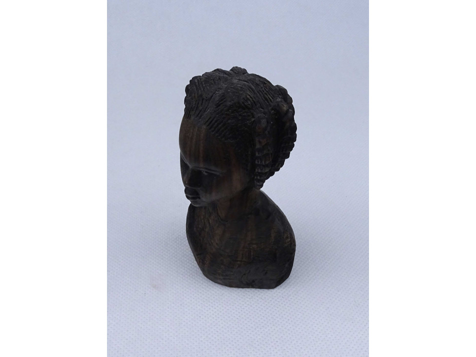 Afrikai egzotikus keményfa fafaragás fiatal női mellszobor 11 cm