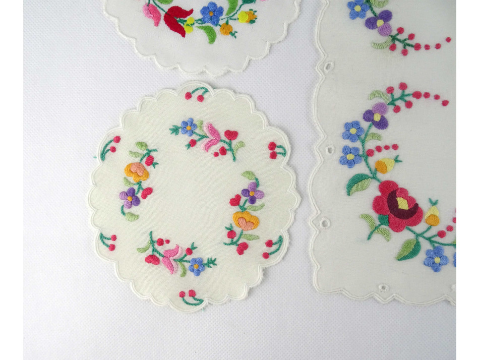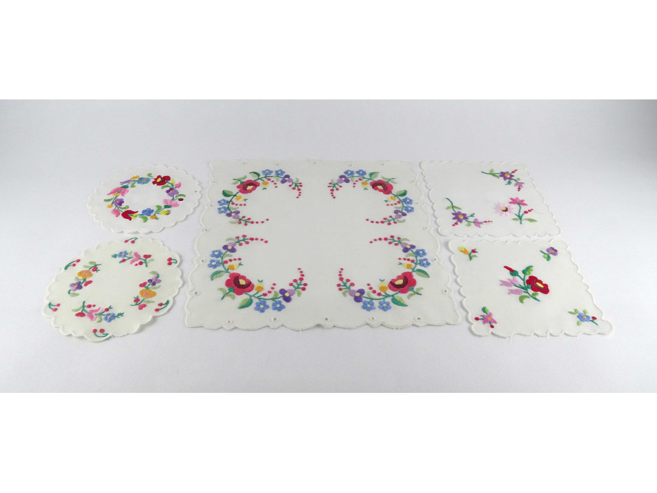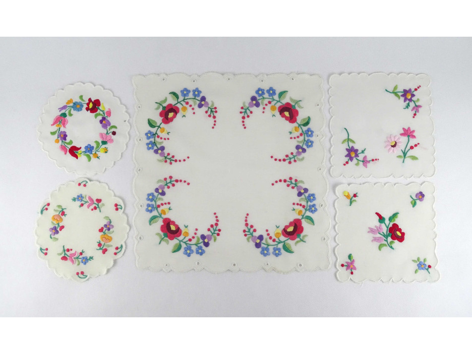 Hímzett kalocsai mintás vászon terítő csomag 5 darab
