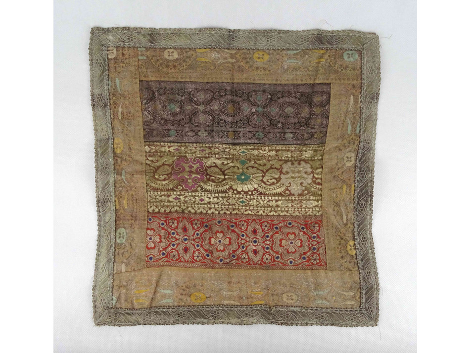 Antik, antimezion hibátlan állapotú, négyzet alakú, különböző színű mintájú selyembrokát darabokból összevart, hátoldalán piros selyemmel borított ereklyetartó. A sokszínű szöveten az arany, az óarany és a vörös színek hangsúlyosak.