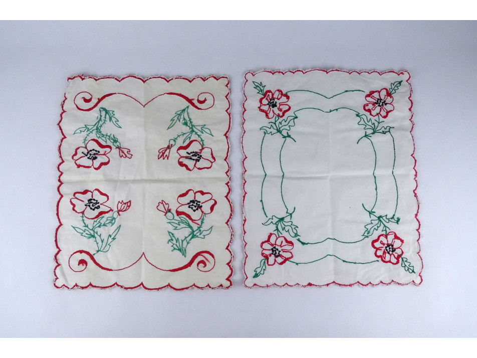 Régi hímzett asztalterítő pár 30 x 24 cm