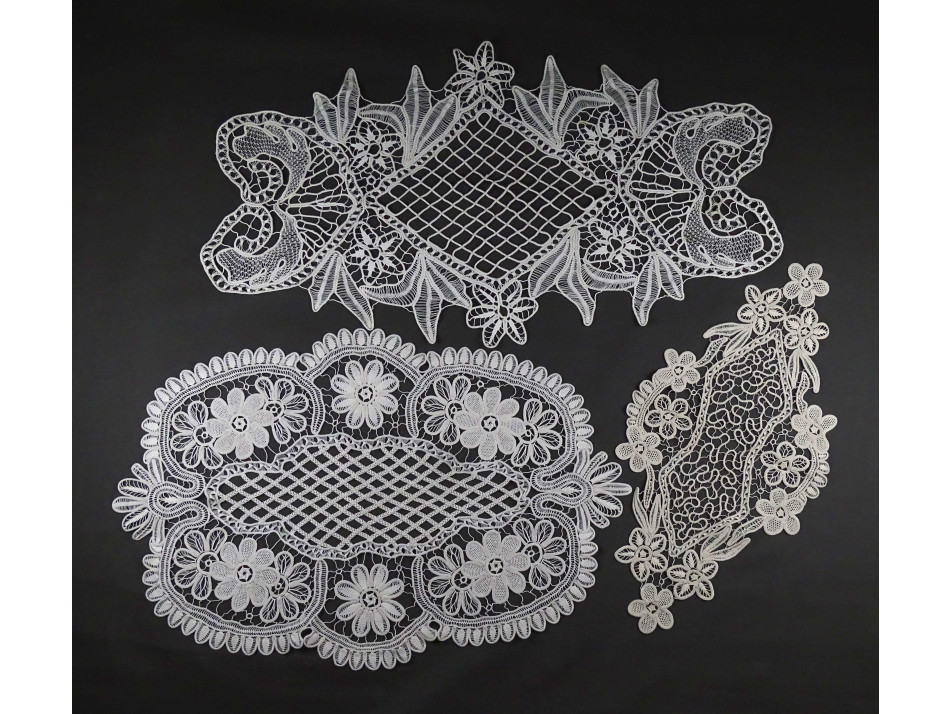 Régi, szép állapotú, közepes méretű, ovális alakú, horgolt csipketerítő csomag, 3 darab egyben.