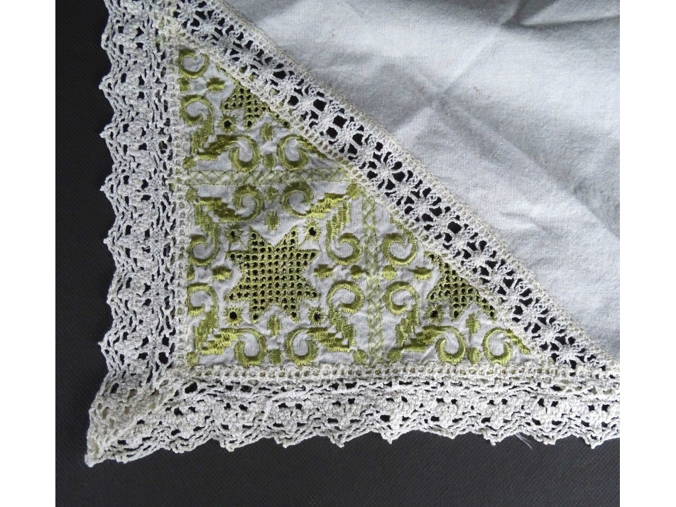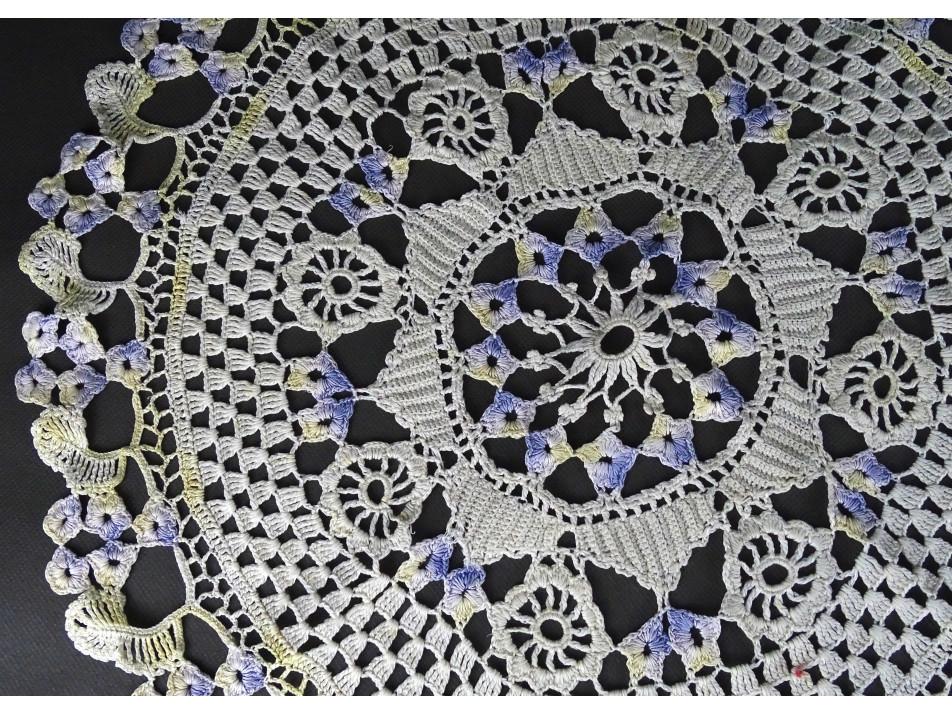 Régi, szép állapotú, közepes méretű, különleges, horgolt hímzett csipketerítő csomag, 4 darab egyben.