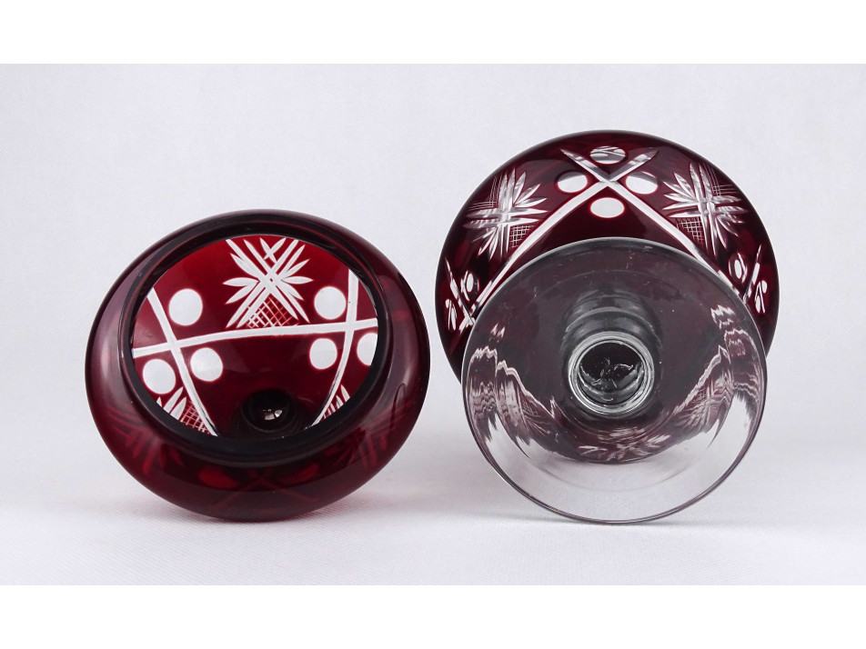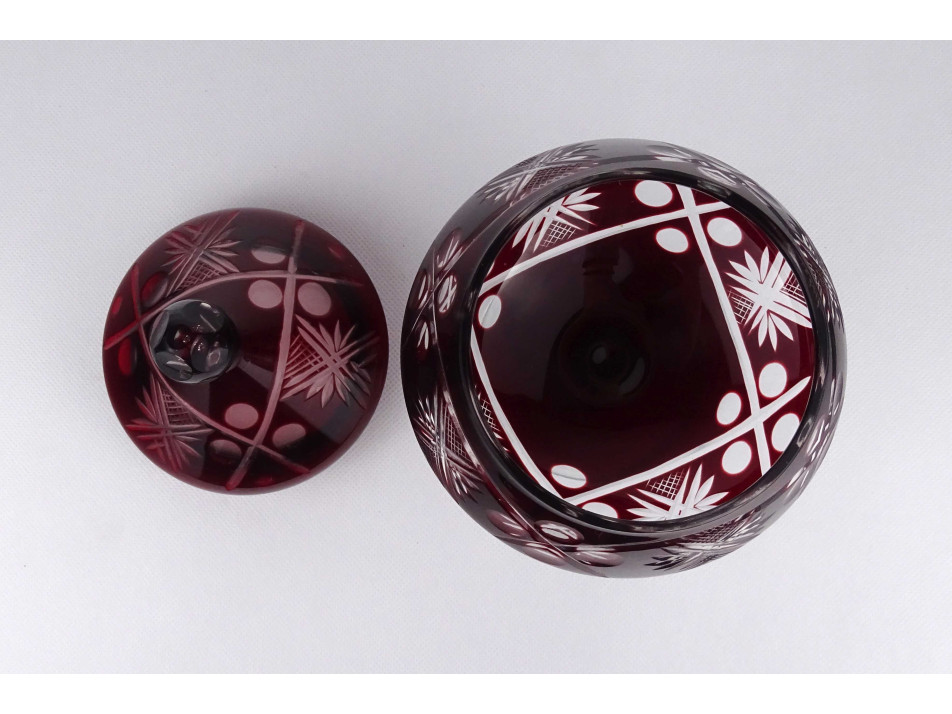 Régi bordó színű fedeles csiszolt üveg bonbonier 25 cm