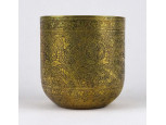 Régi, keleti, indiai, vésett mintákkal díszített, réz kaspó, virágtartó 10.3 x 9.7 cm