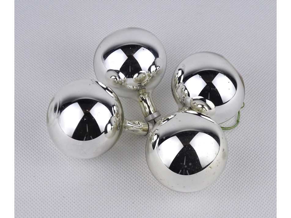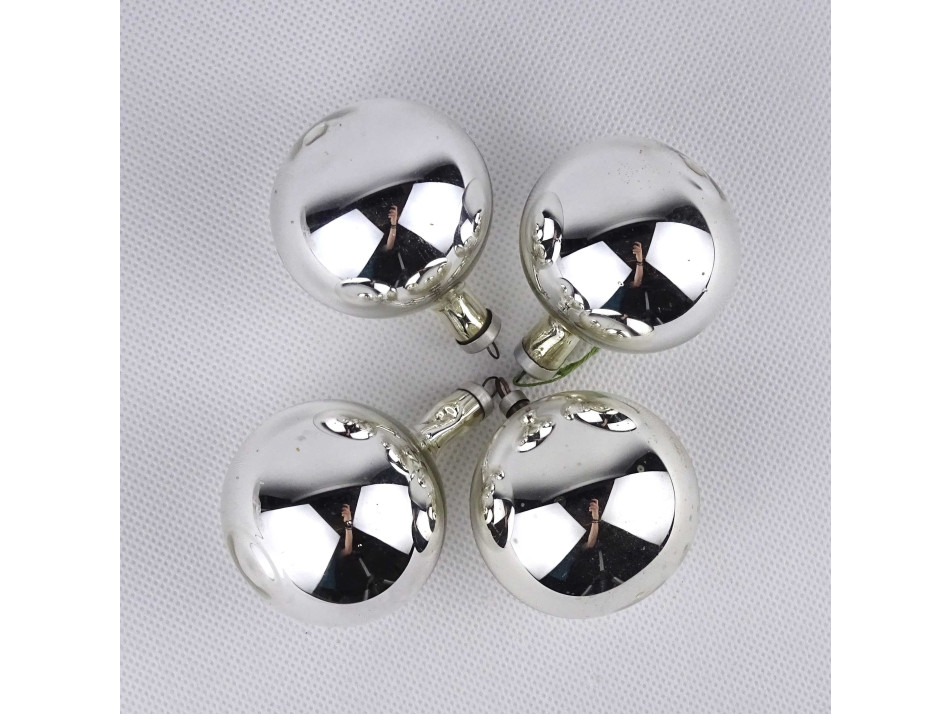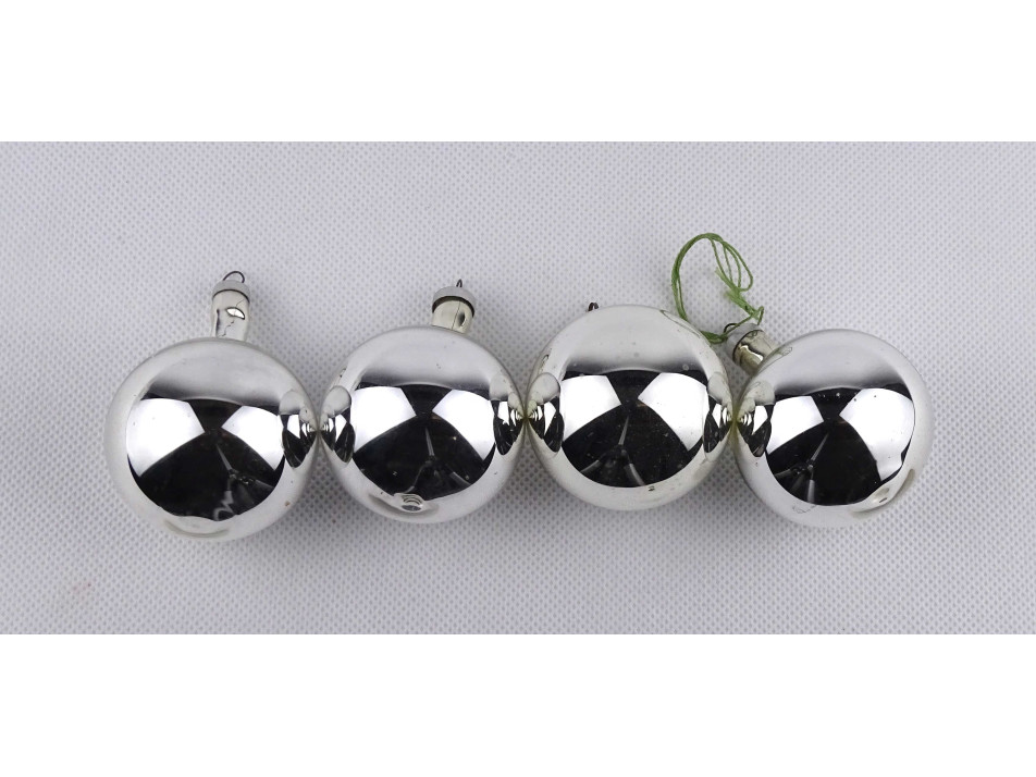 Régi ezüst színű üveggömb karácsonyfadísz csomag 4 darab