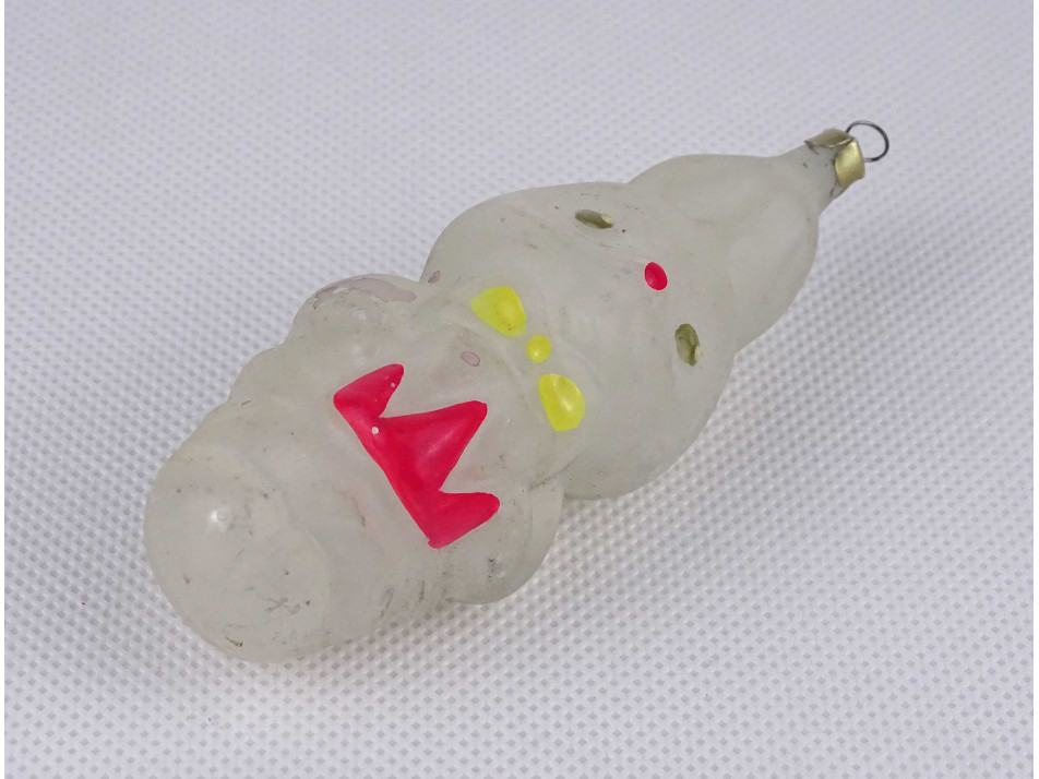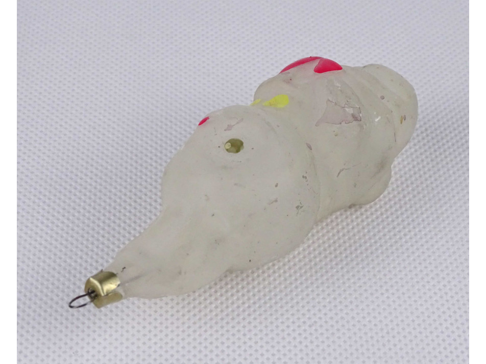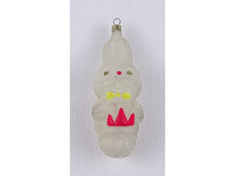 Régi, szép állapotú, nyuszi alakú, színes festett üveg karácsonyfadísz.