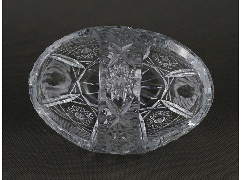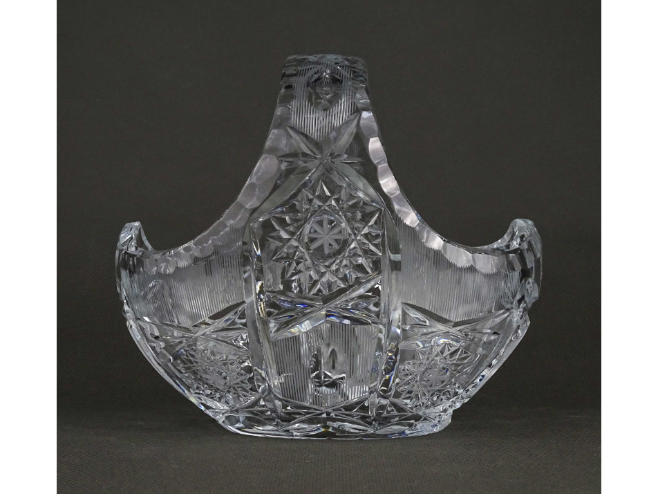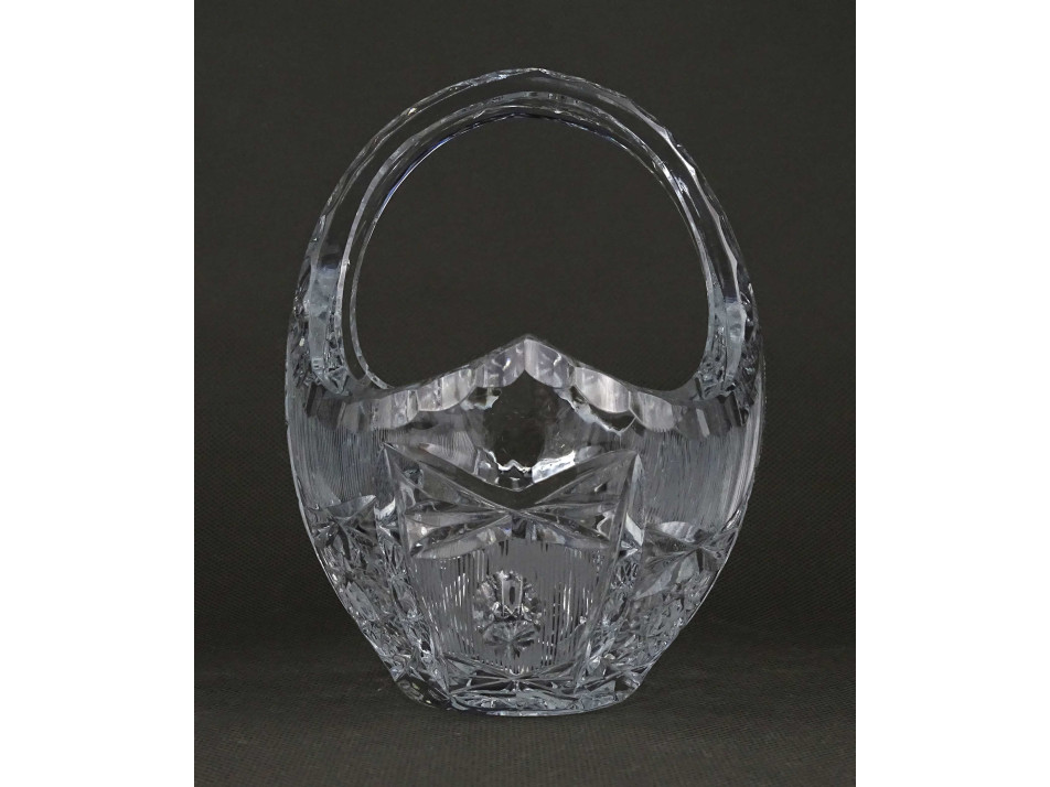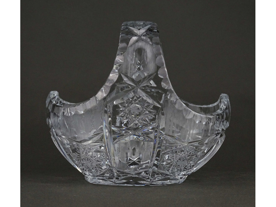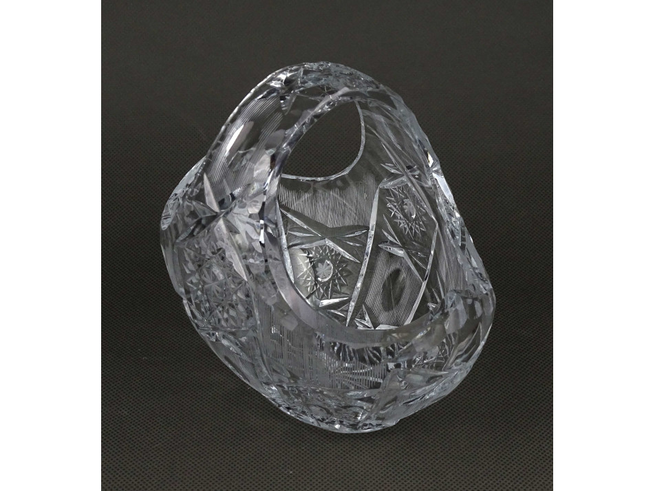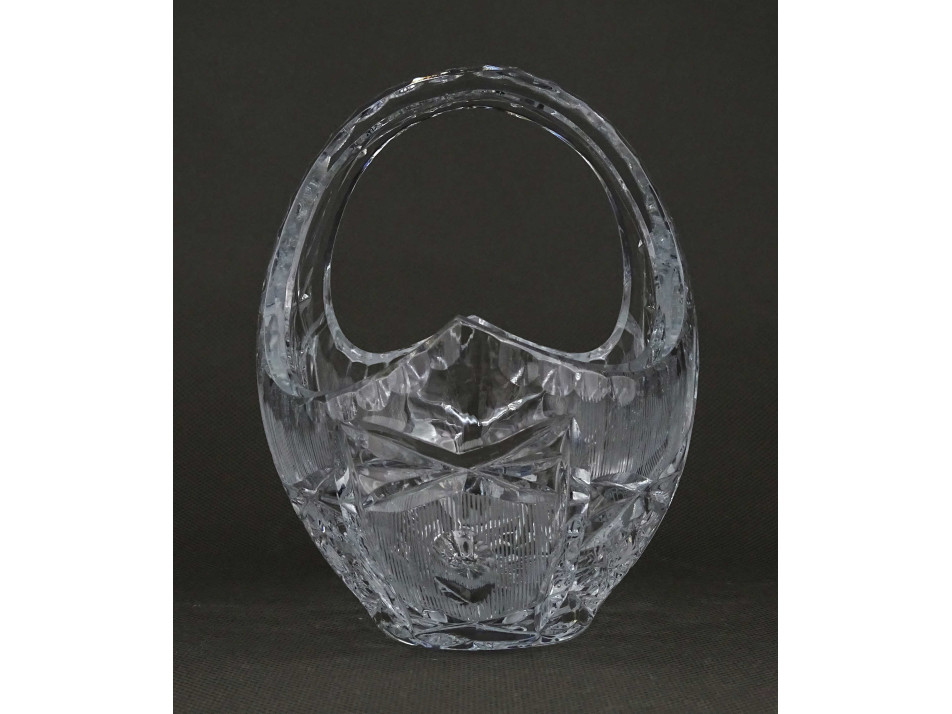Hibátlan állapotú, kisméretű kristály kosár, csiszolatokkal gazdagon díszítve. Ékszertartó, gyűrűtartó kis kosár.