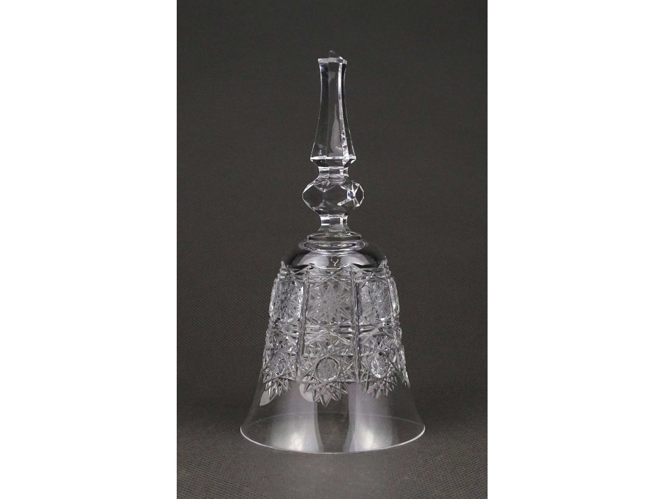 Hibátlan állapotú, jelzett, csiszolatokkal díszített kristály csengő, inashívó csengettyű.