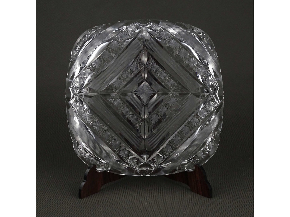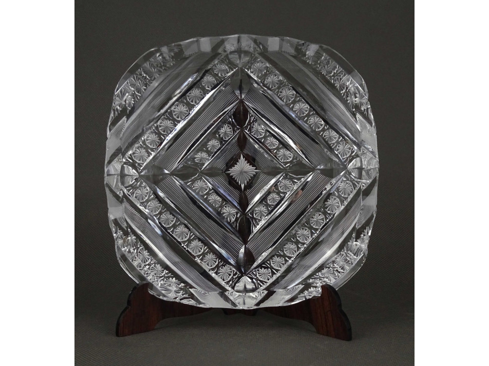 Hibátlan állapotú, vastagfalú, csiszolatokkal gazdagon díszített kristály üveg hamutál, hamutartó.