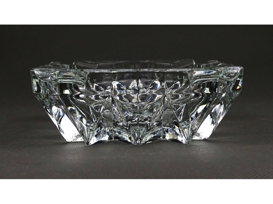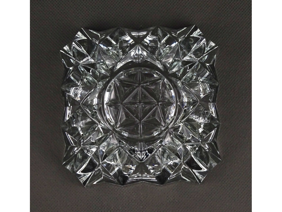 Régi, hibátlan állapotú, vastagfalú, négyszög alakú, négy állásos, látványos csiszolt üveg hamutál, hamutartó.