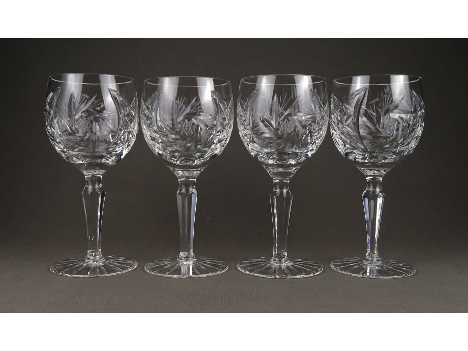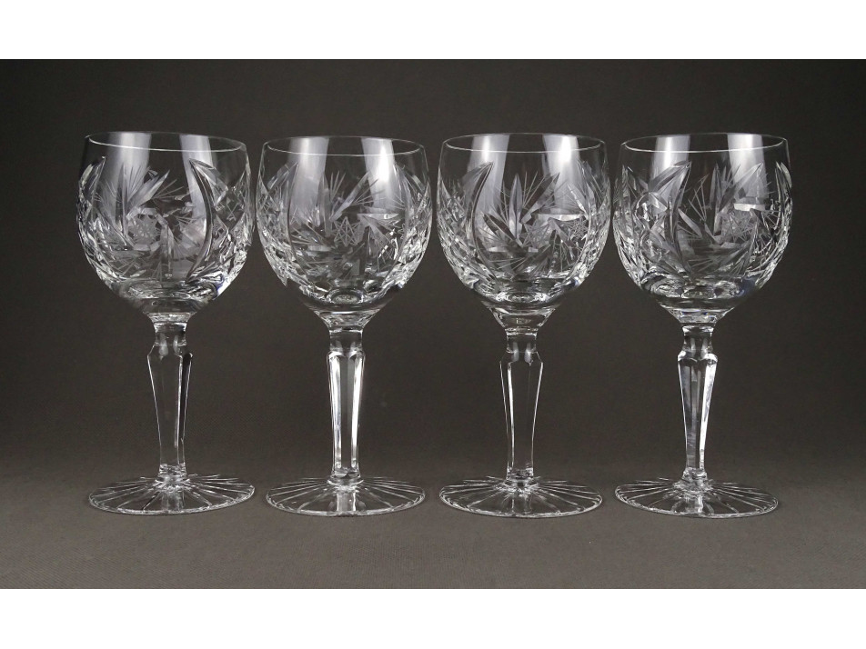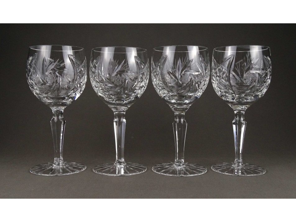 Hibátlan állapotú, elegáns talpas, csiszolt kristály boros pohár készlet, 4 darab.