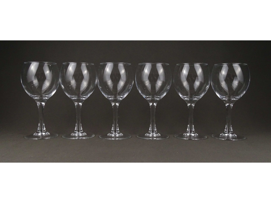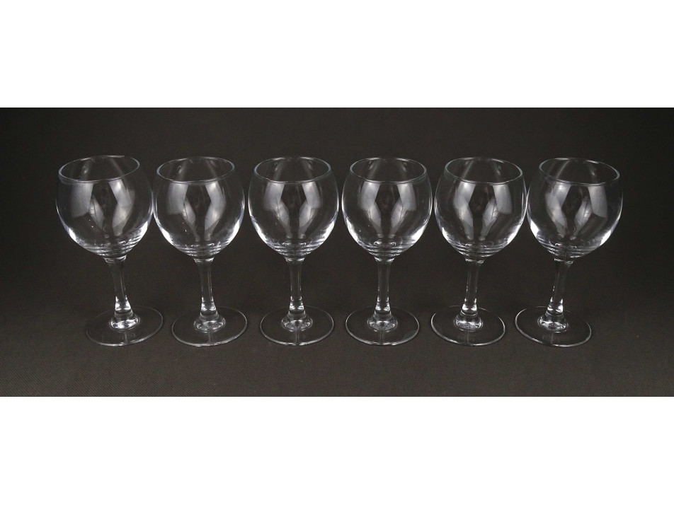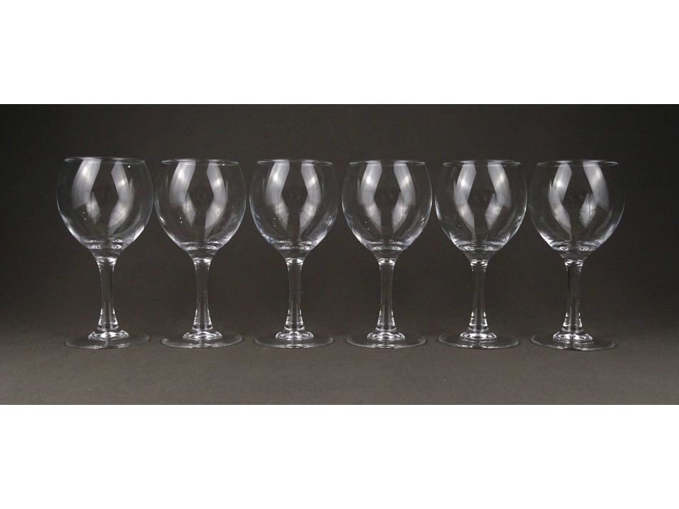 Gyönyörű, elegáns, hibátlan állapotú egyforma talpas üveg pohár, hat darabos borospohár készlet. Talpán felirat: ARC FRANCE