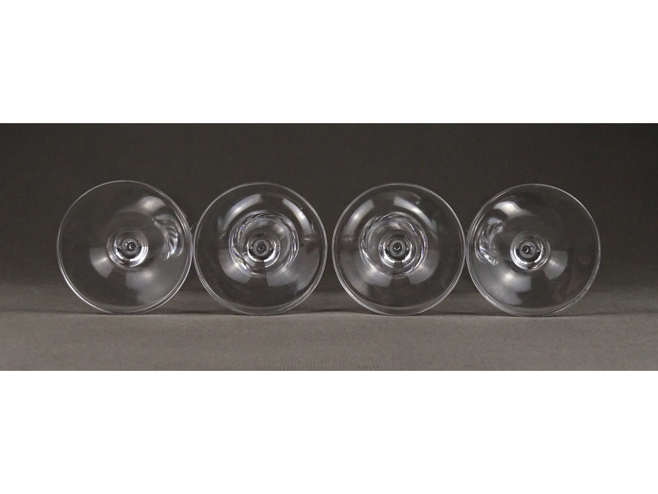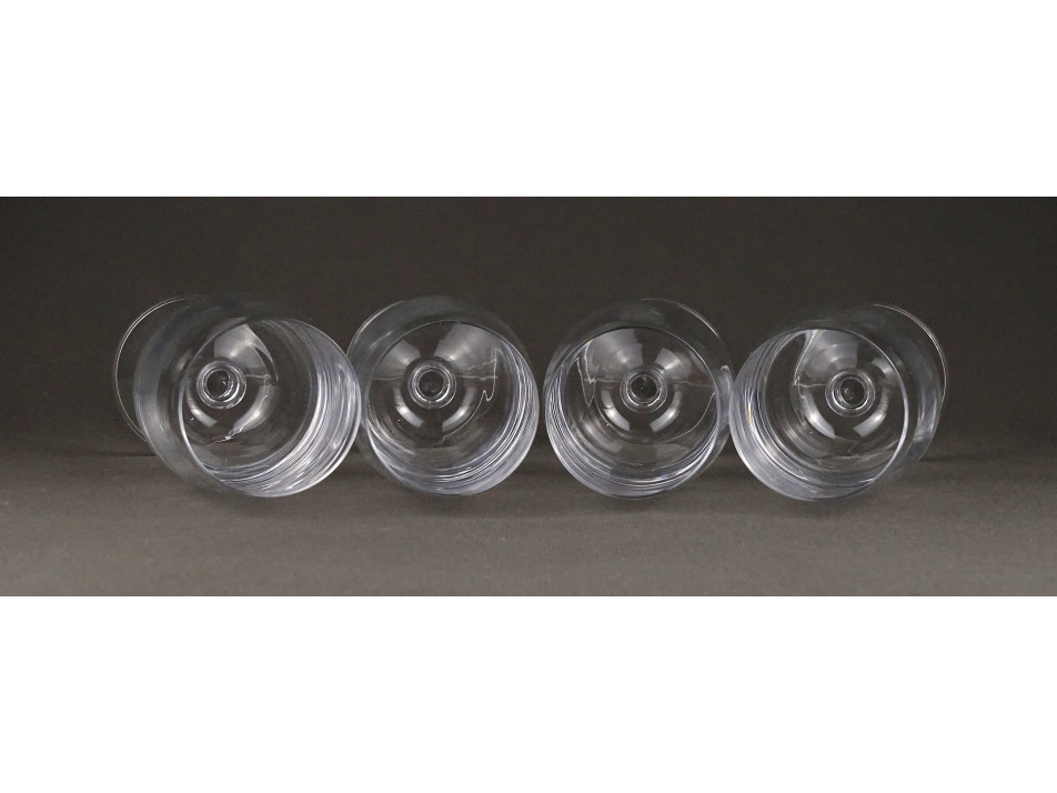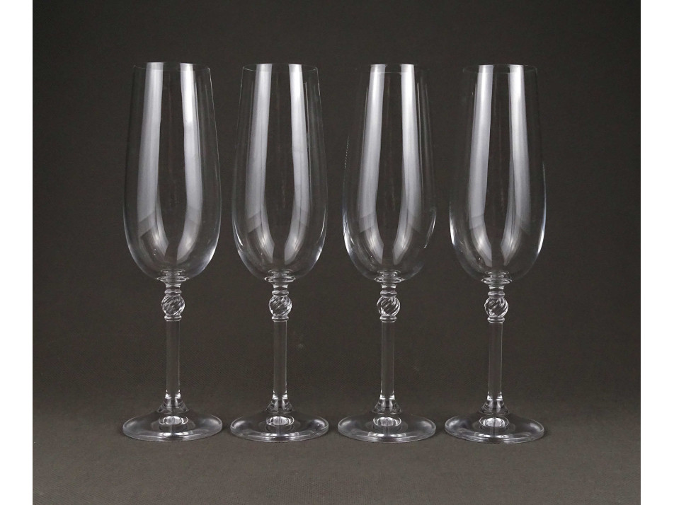 Hibátlan állapotú, elegáns, magas, talpas üveg pezsgőspohár készlet. 4 darab.