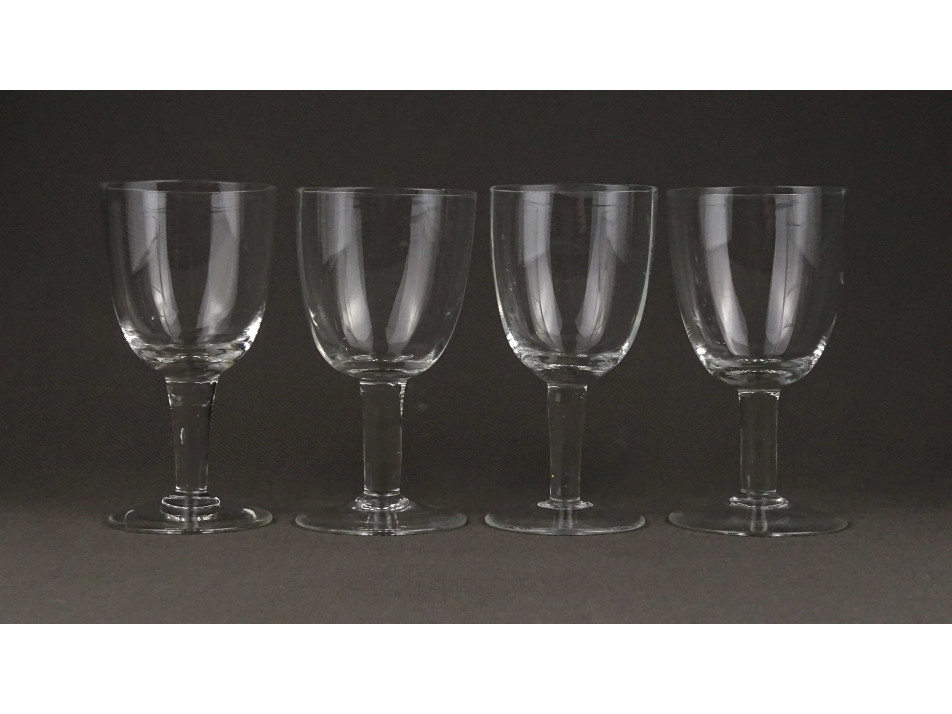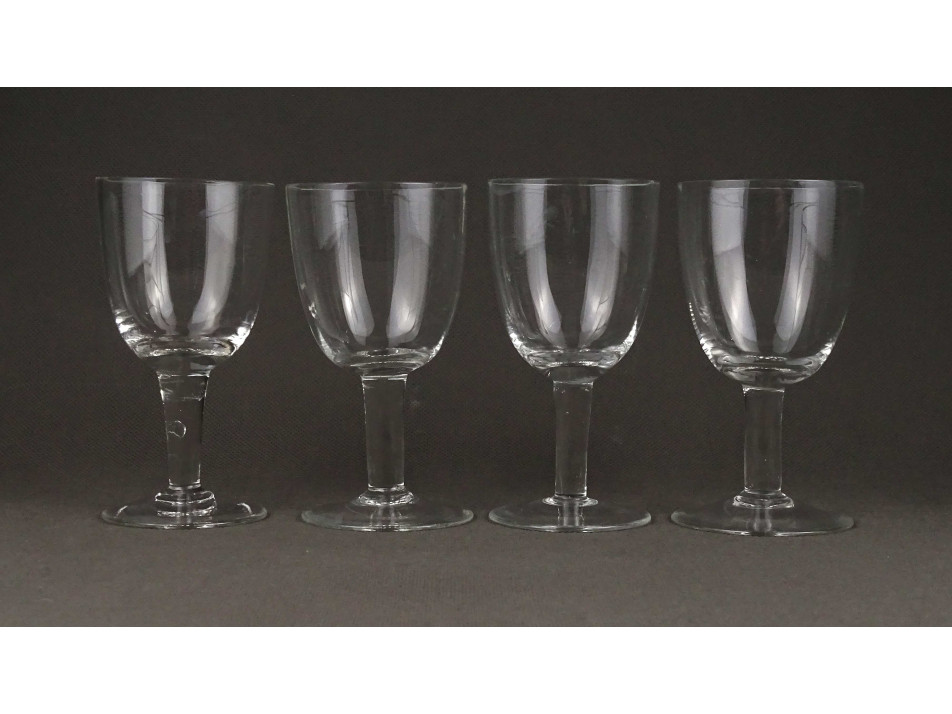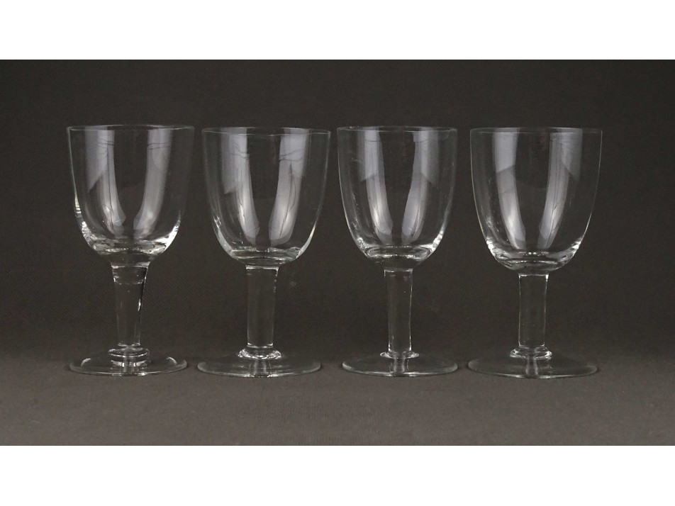 Régi, elegáns, belülről fazettált, talpas üveg boros pohárkészlet, 4 darab.