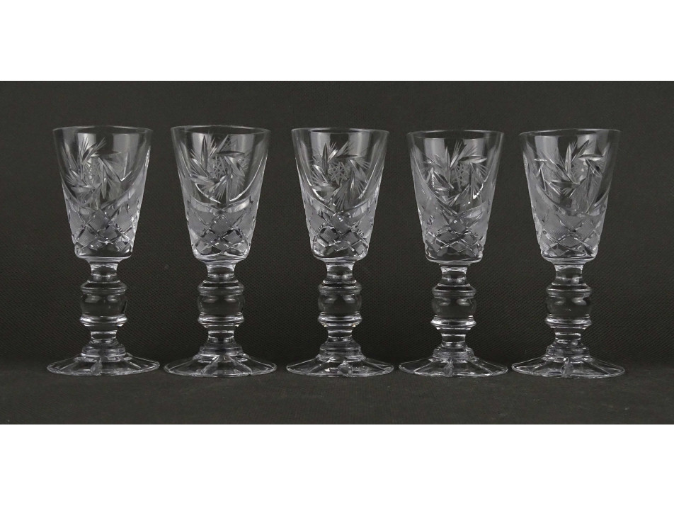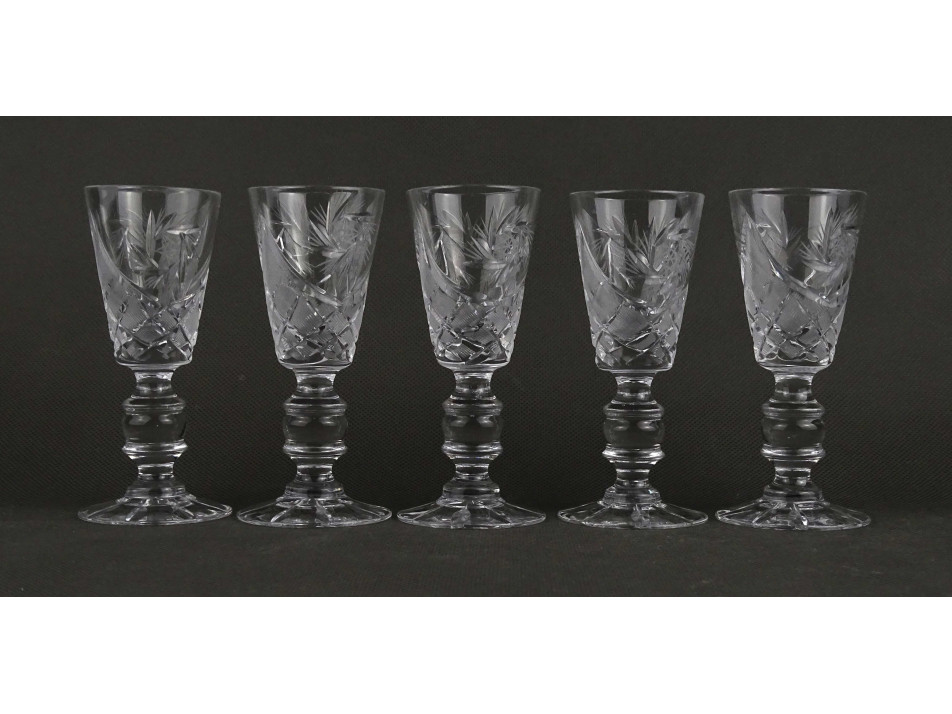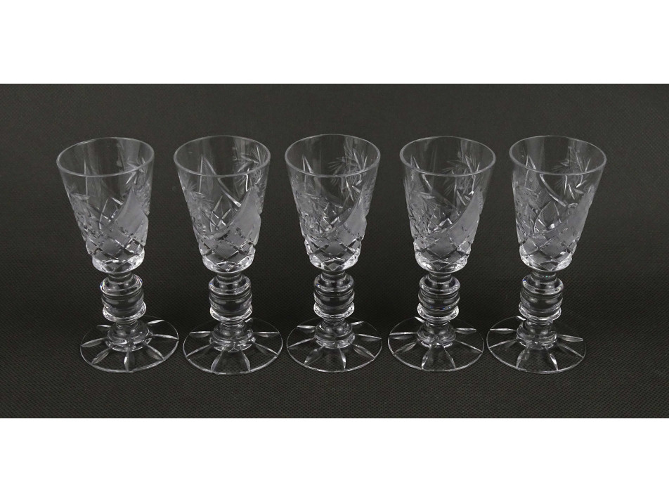 Elegáns talpas csiszolt kristály rövid italos pohárkészlet 5 darab