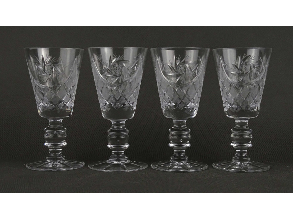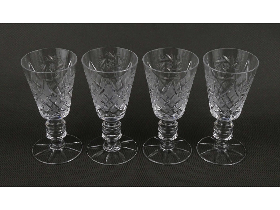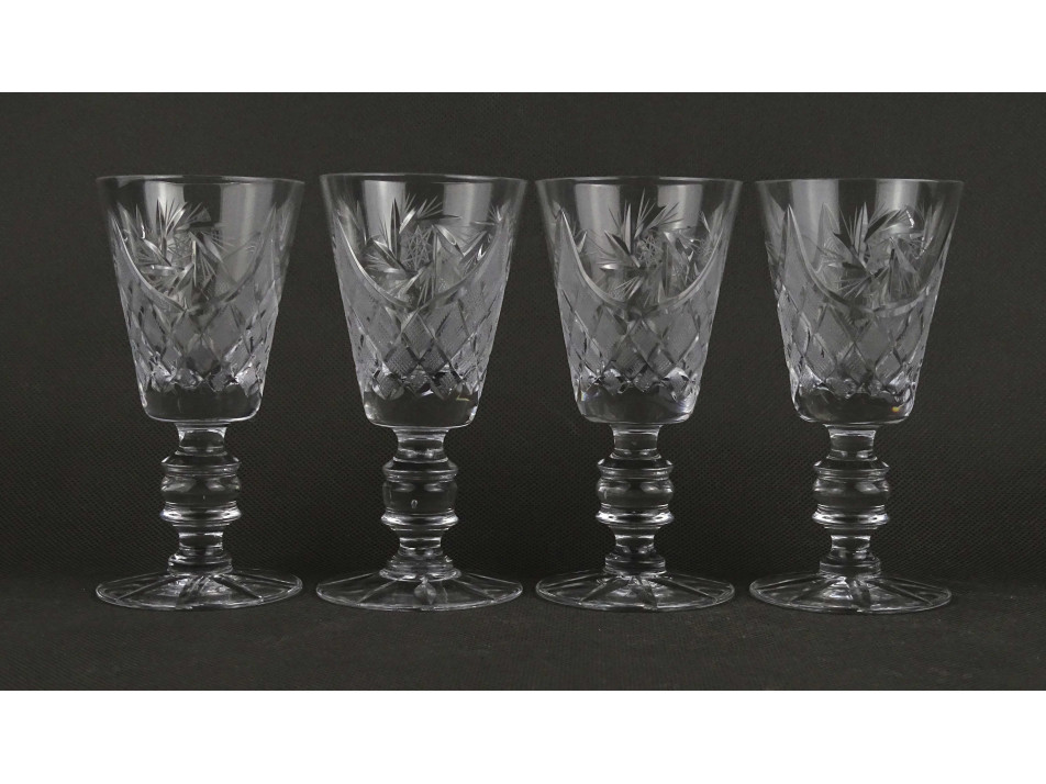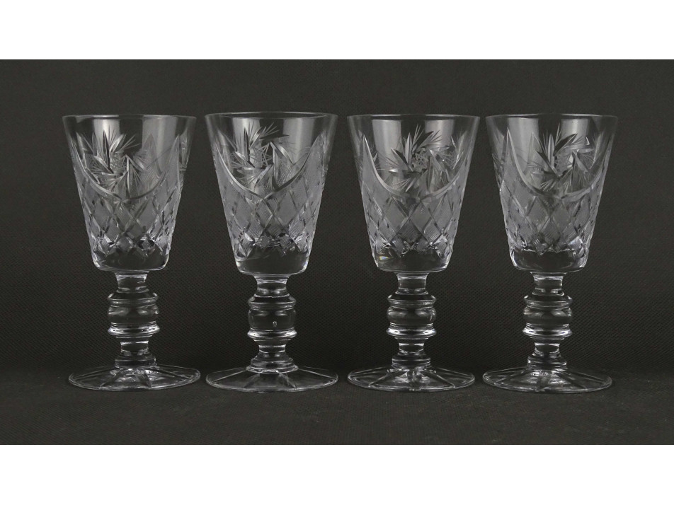 Hibátlan állapotú, négy darabos, csiszolt talpas kristály pohár készlet. Boros, likőrös pohár készlet.