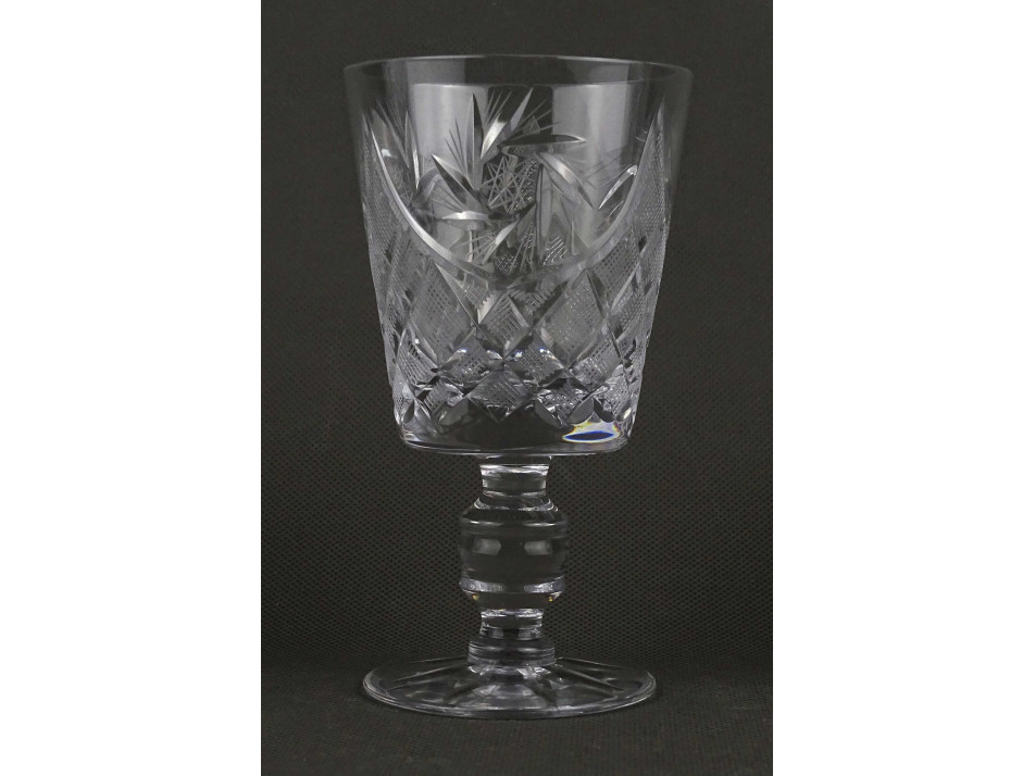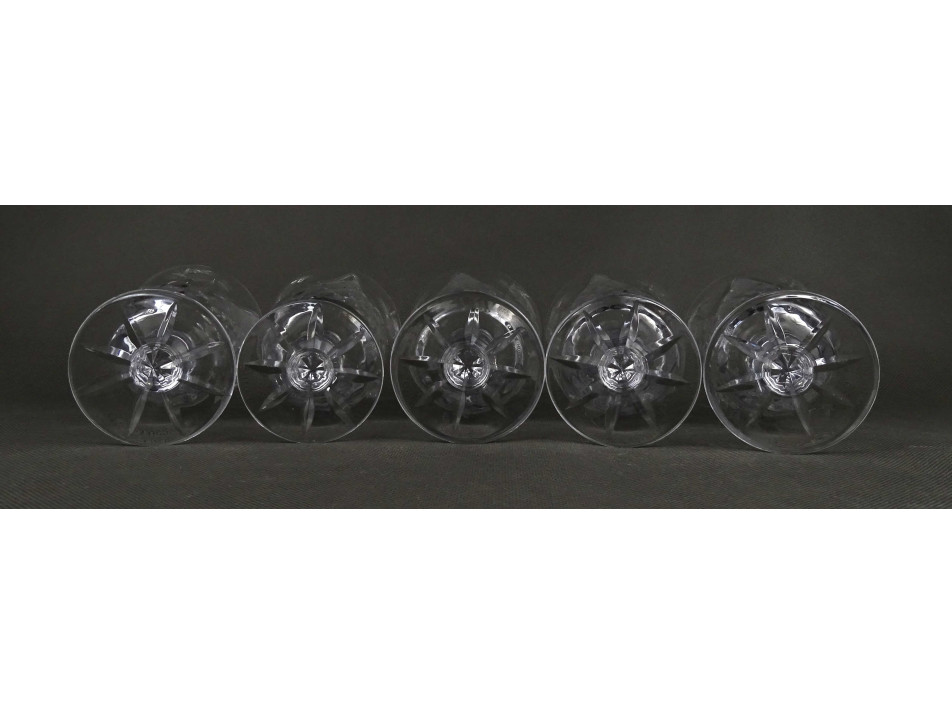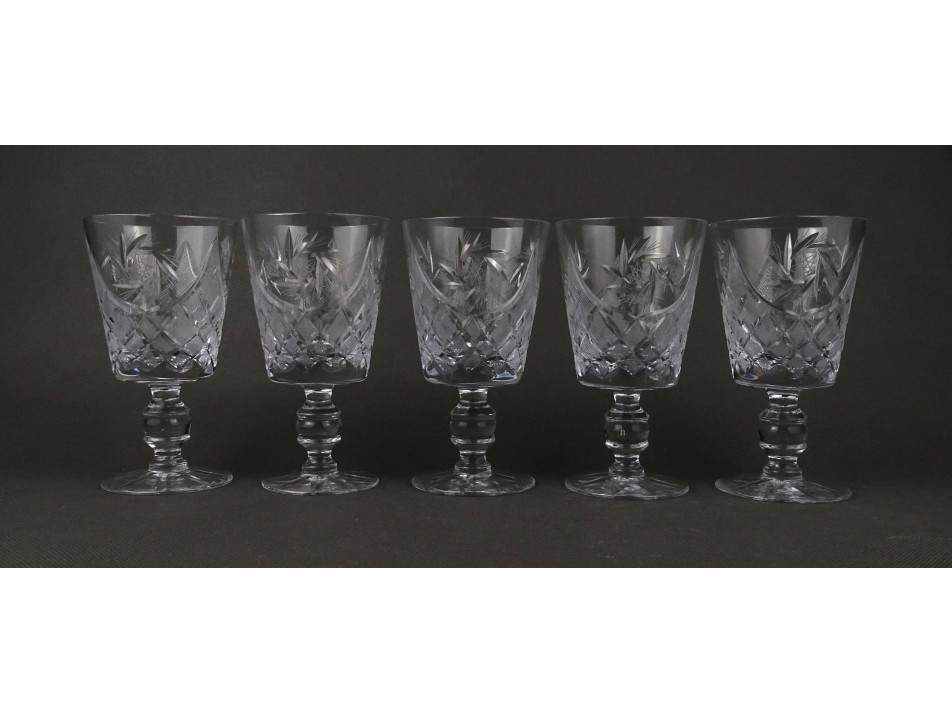 Hibátlan állapotú, öt darabos csiszolt talpas kristály pohár készlet. Boros pohár készlet.