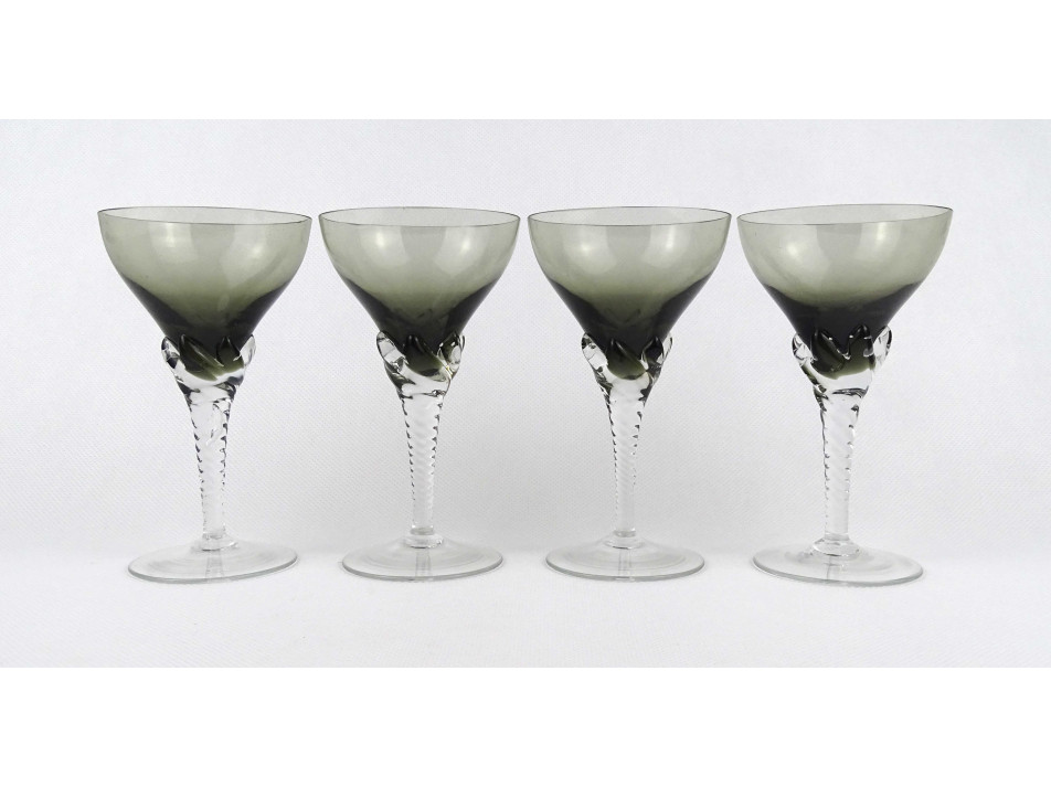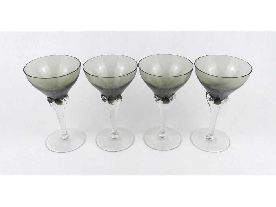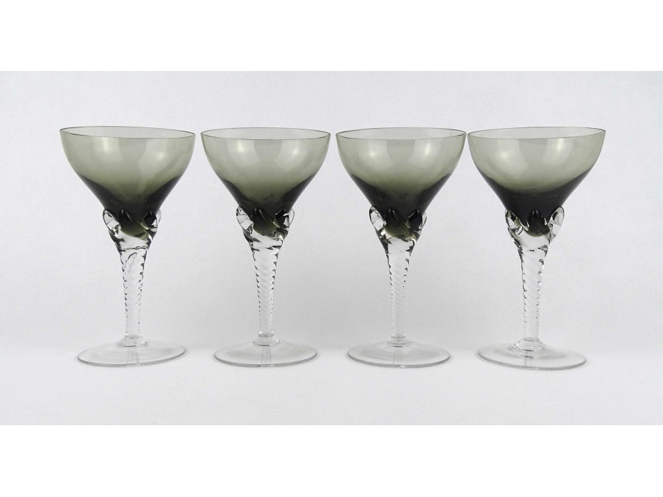 Füstszínű csavart szárú talpas boros pohár készlet 4 darab