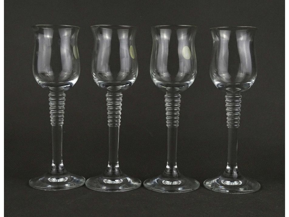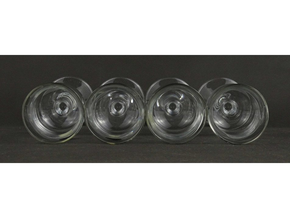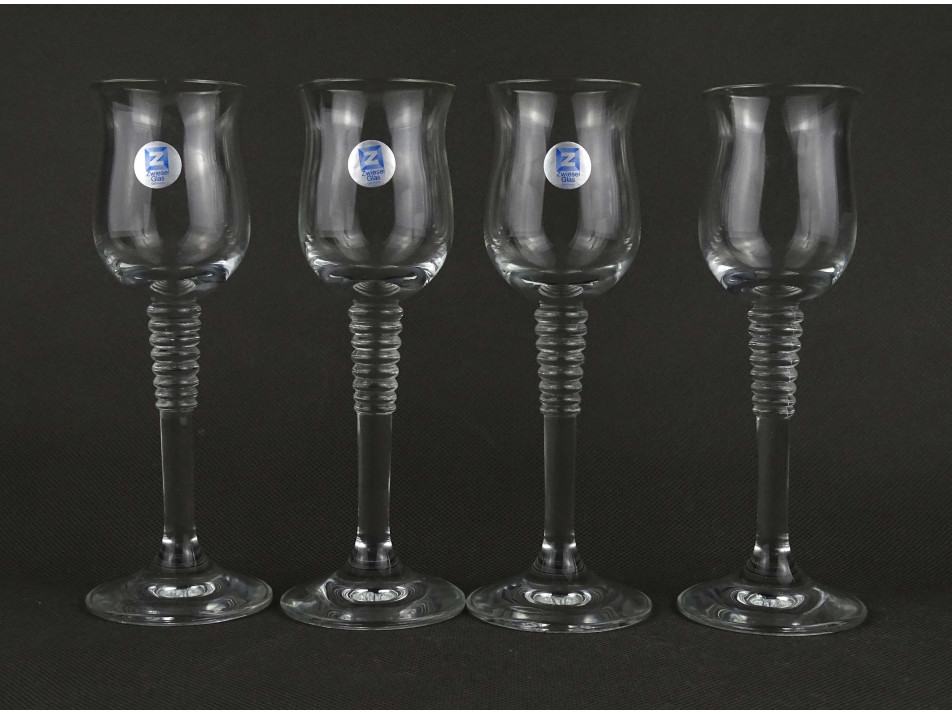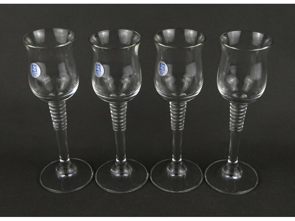 Elegáns, Zwiesel Glas talpas pálinkás, röviditalos üveg pohárkészlet, 4 darab. Rajtuk gyártói matrica: ZWIESEL GLAS GERMANY