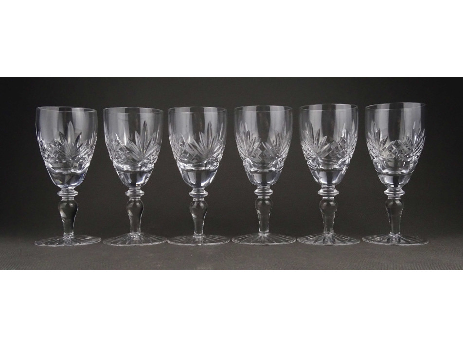 Hibátlan állapotú, talpas csiszolt üveg pohárkészlet. Hat darabos likőrös pohár készlet.