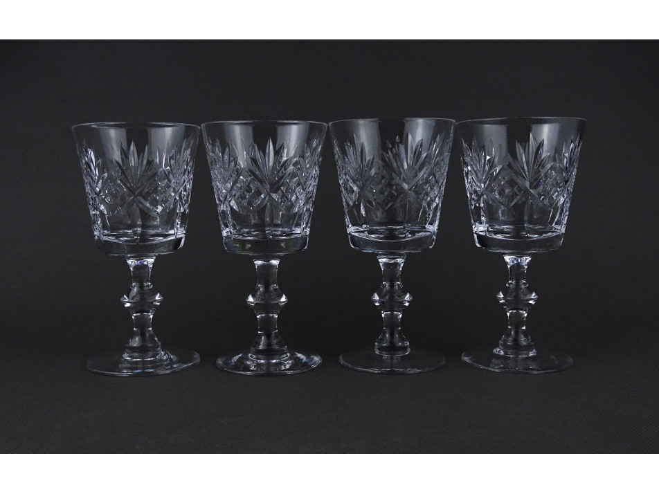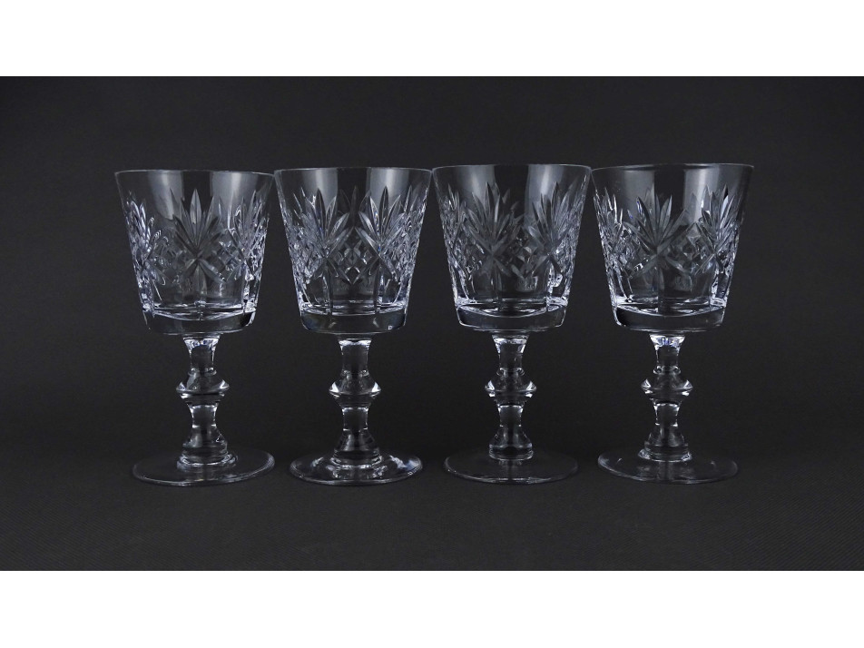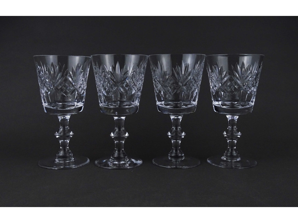 Hibátlan állapotú, elegáns talpas boros, fehérboros kristályüveg pohárkészlet, finom csiszolt díszítésekkel, 4 darab.