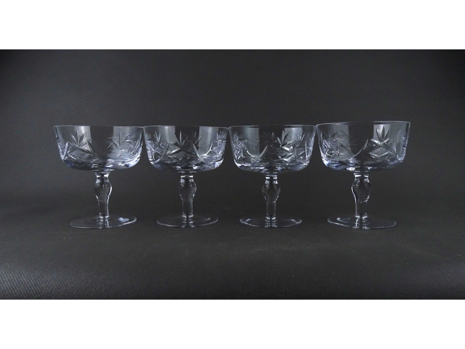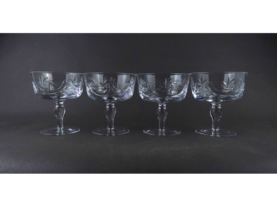 Régi csiszolt kristály talpas pezsgőspohár készlet 4 darab