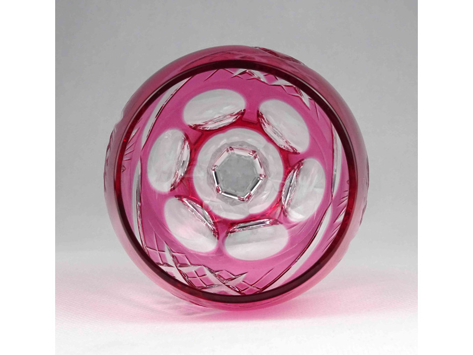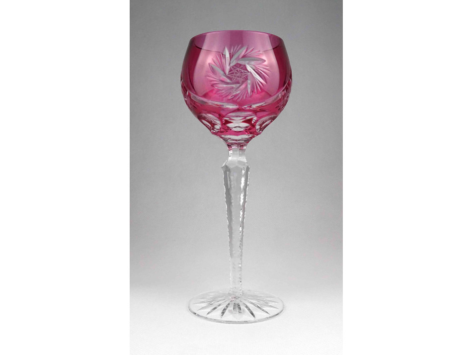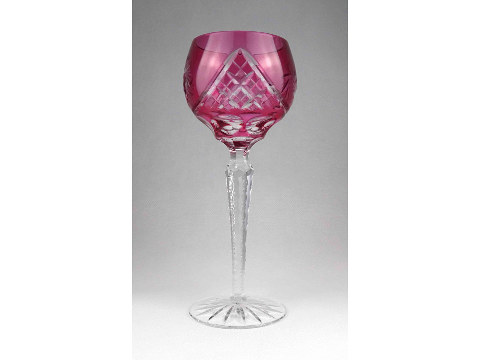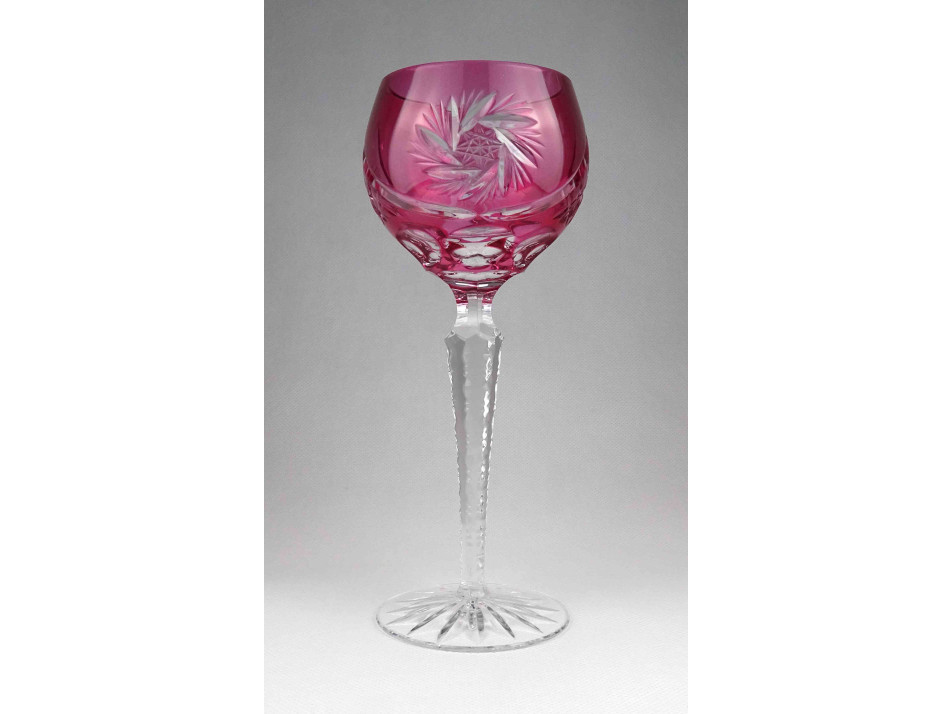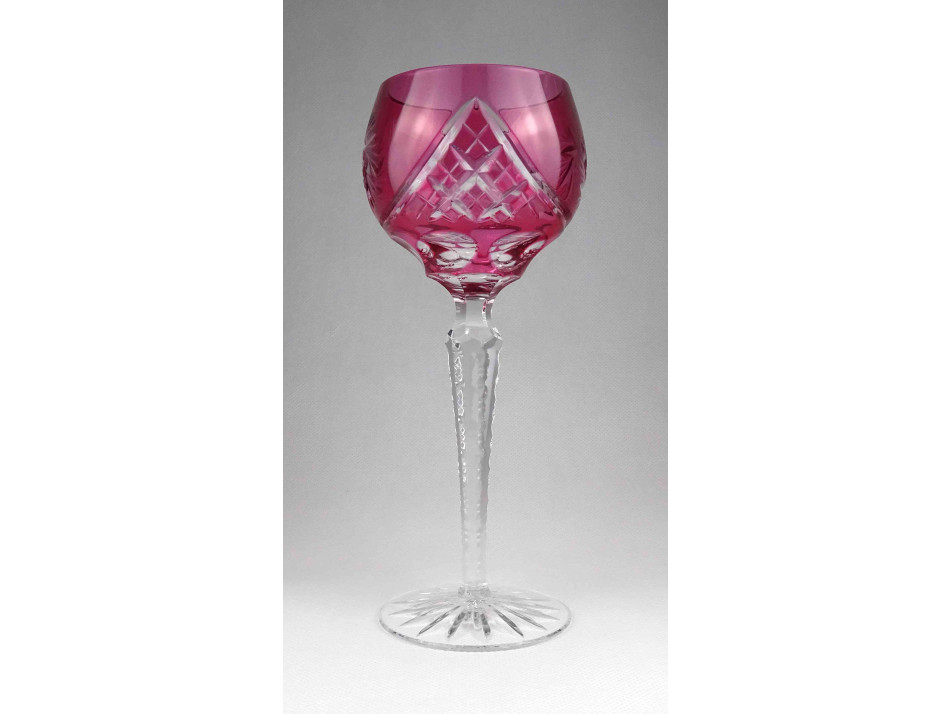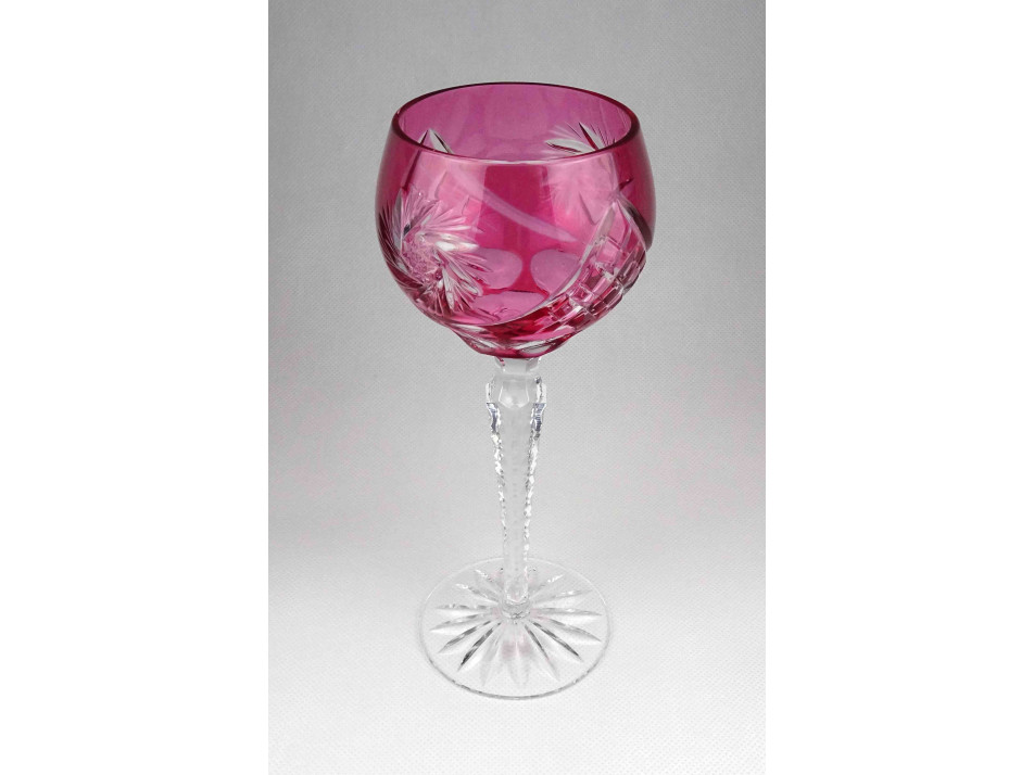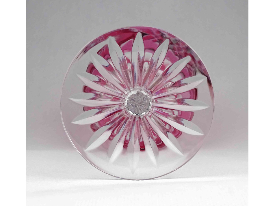 Régi rózsaszín csiszolt kristály talpas boros pohár 21 cm