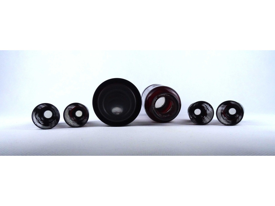 Régi bordó színű csiszolt üveg pálinka kínáló készlet 5 darab