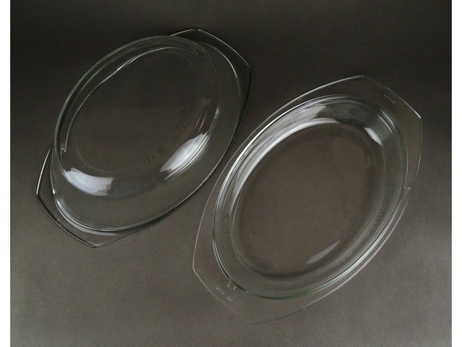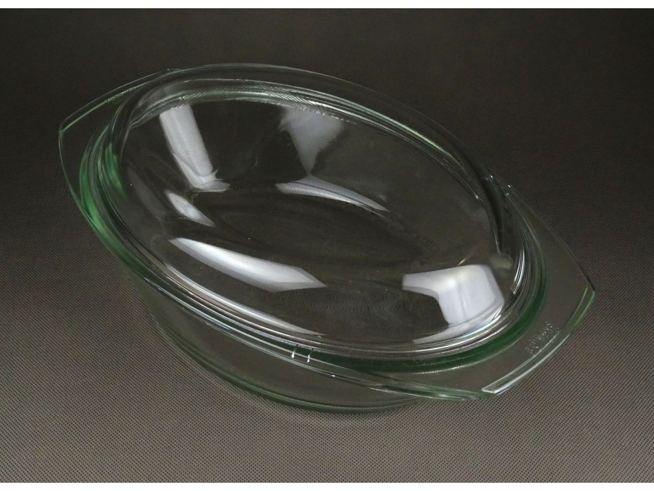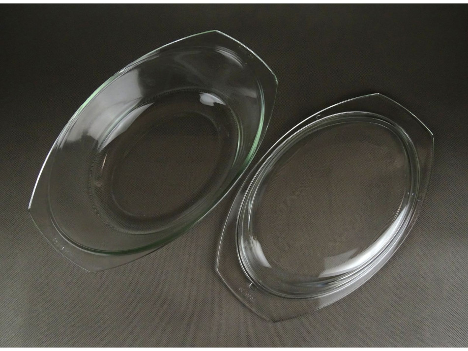 Hibátlan állapotú, ovális alakú hőálló üveg sütőtál fedővel. Nagyon ellenálló a mechanikus sérülésekkel és a hőmérséklettel szemben is (+300/-40 C fok). Előnye a hosszú élettartam, mosogatógépben is mosható.