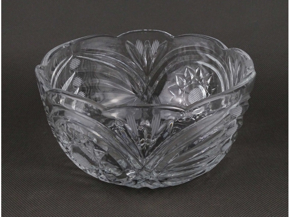 Csiszolt mintákkal díszített, öblös tál, asztalközép, kínáló tál, gyümölcskínáló tál.