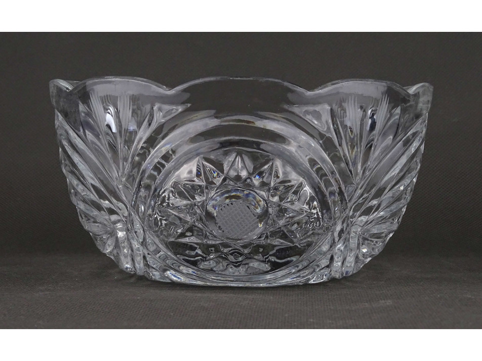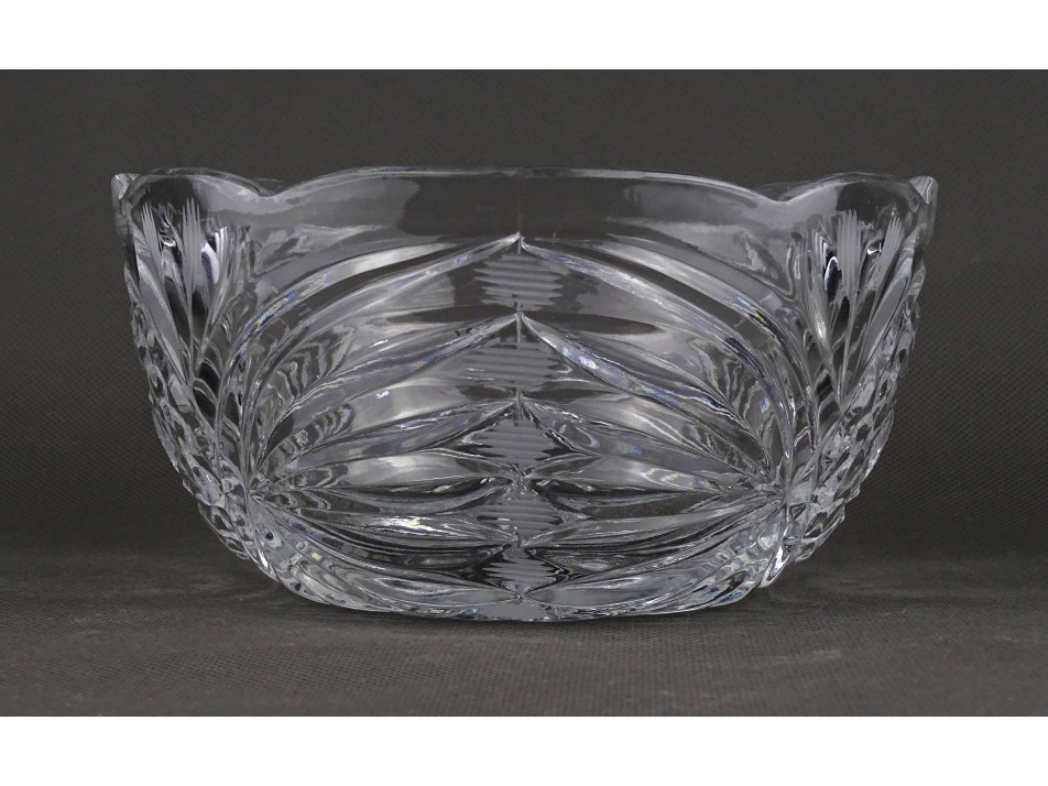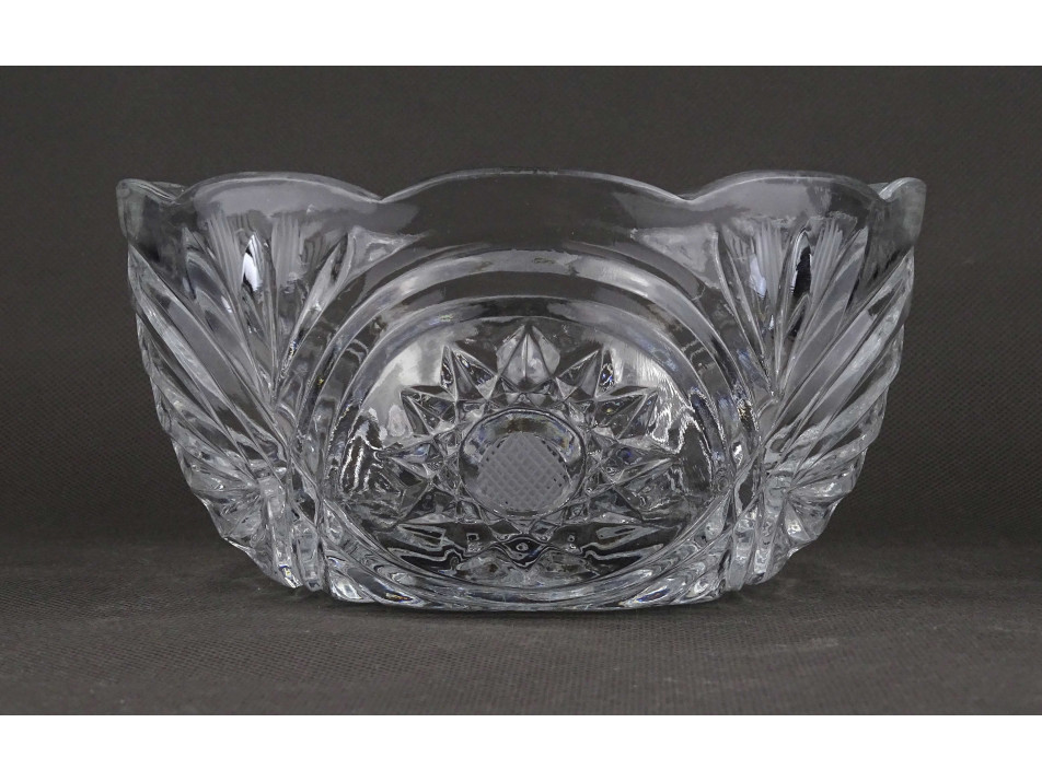 Csiszolt üveg asztalközép, kínáló tál 8.5 x 16 cm