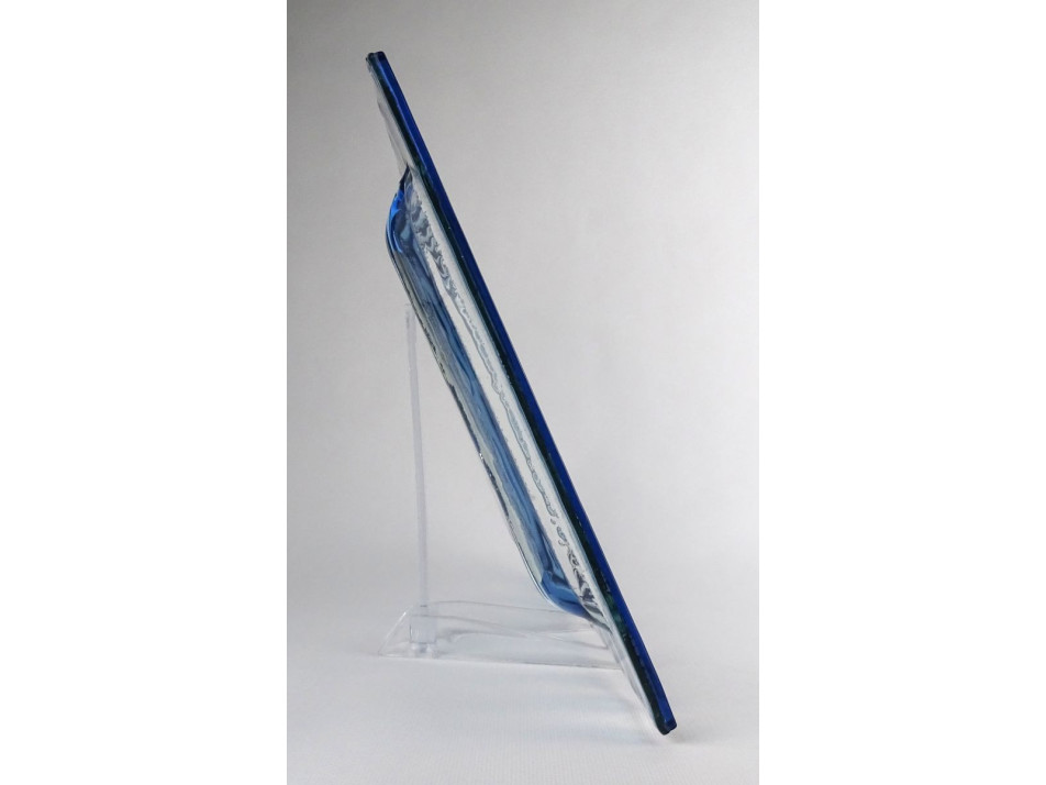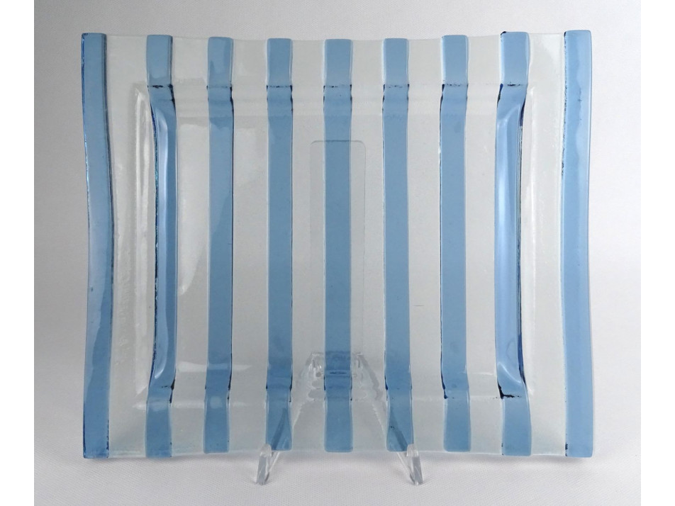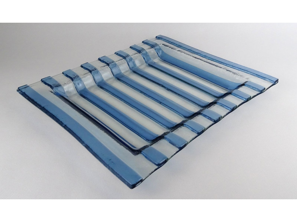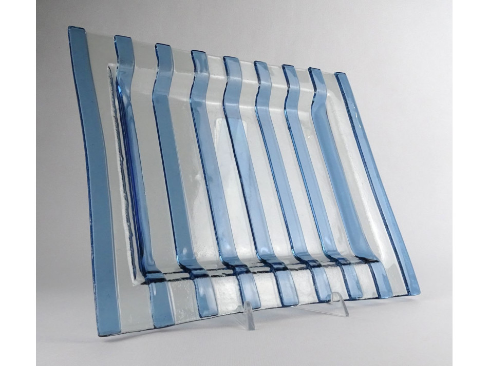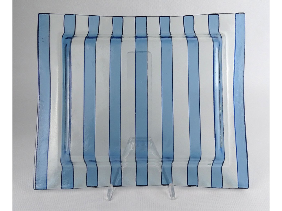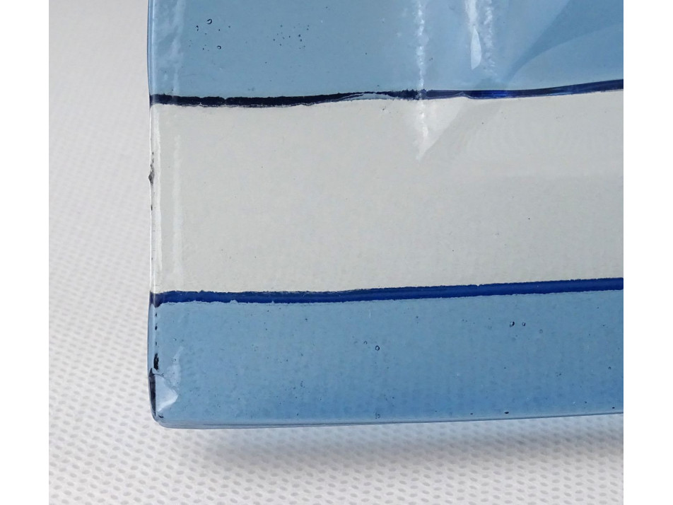 Kék csíkos üveg asztalközép kínáló tál 25 x 30 cm