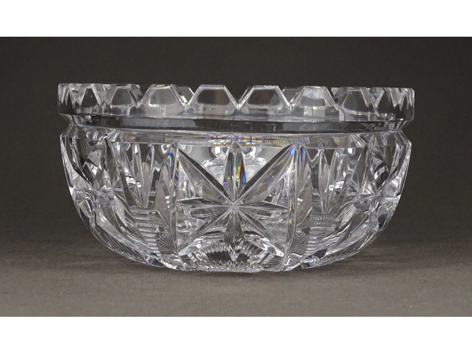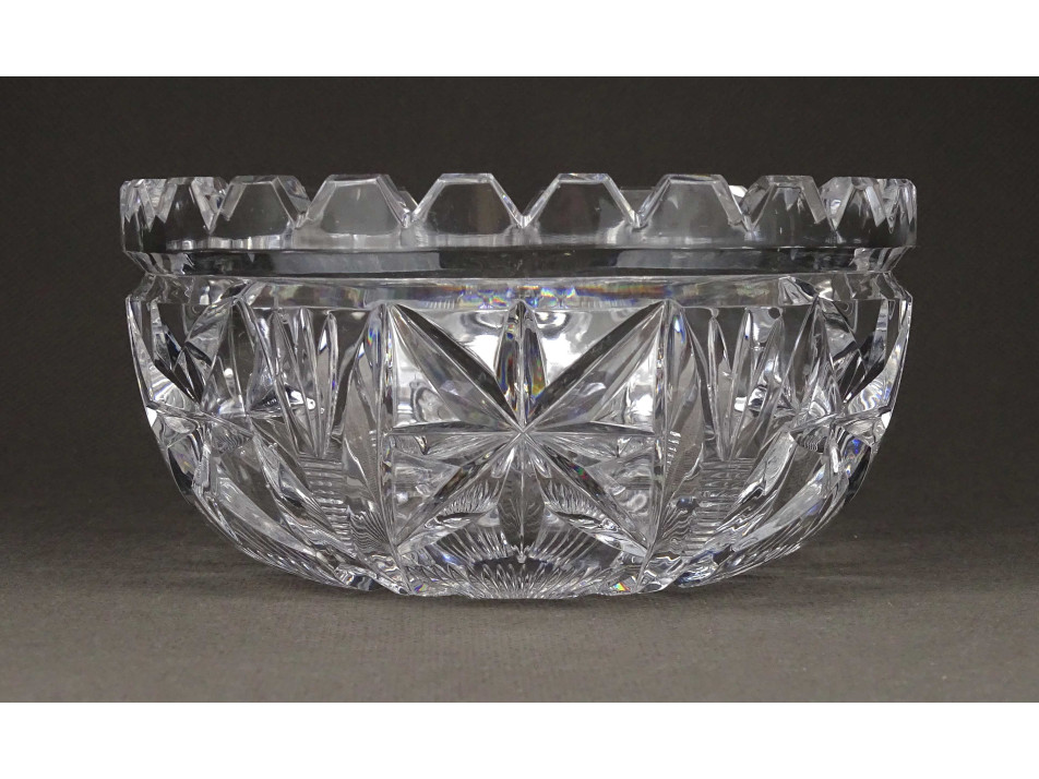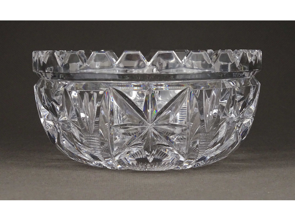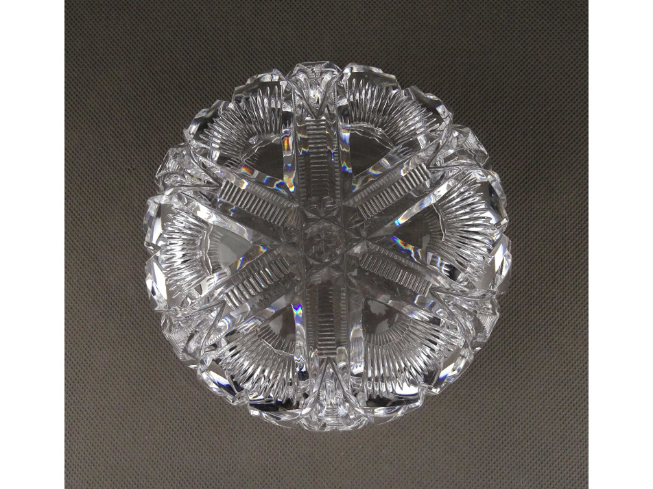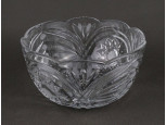 Hibátlan állapotú, csiszolatokkal díszített, vastag falú kristály tálka, asztalközép, kínáló tál.