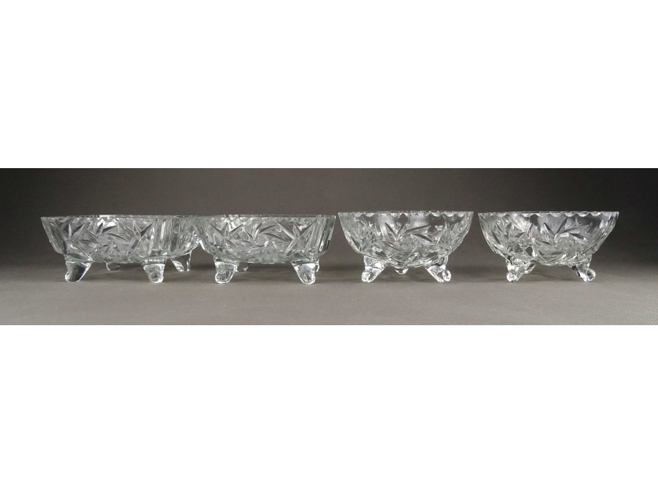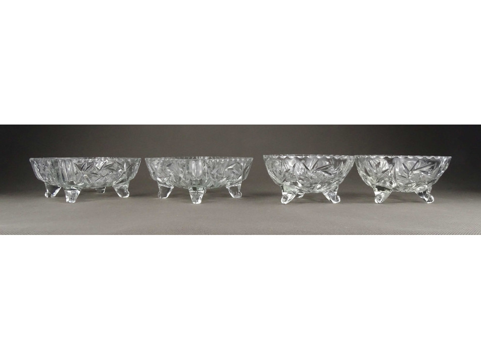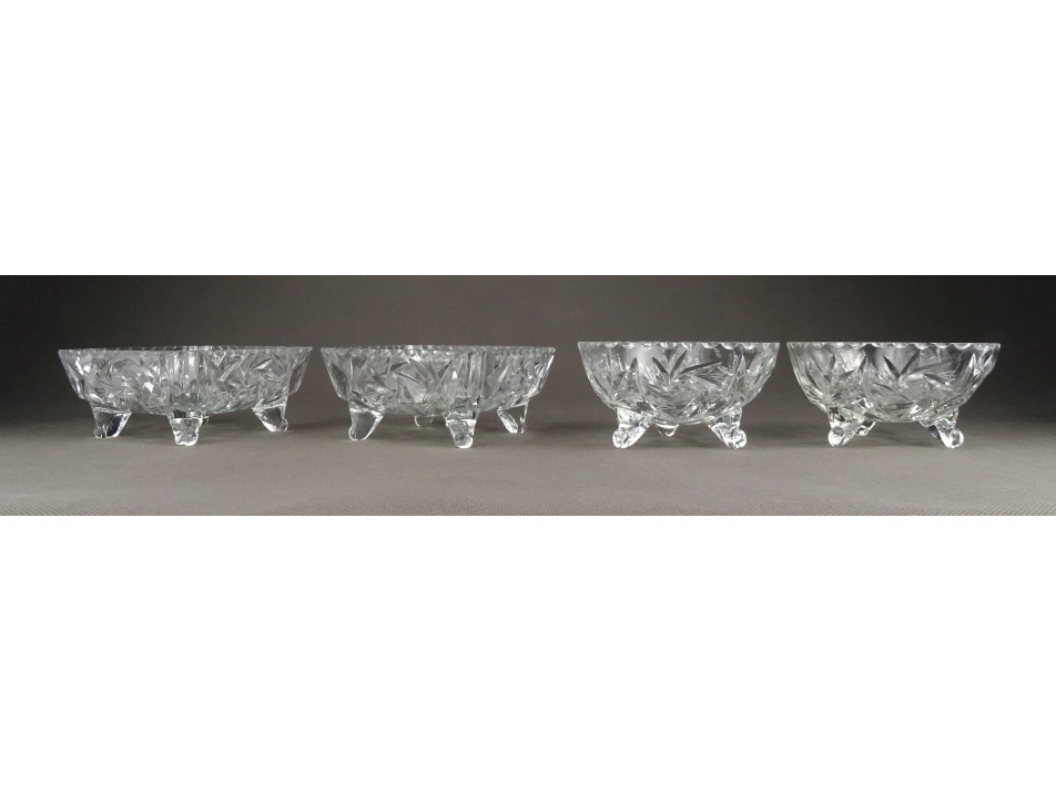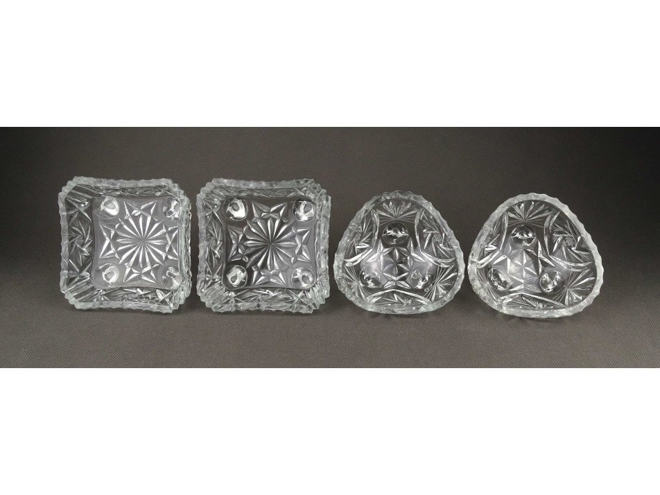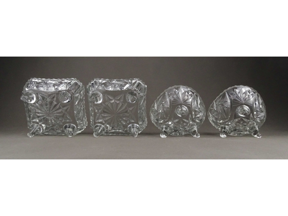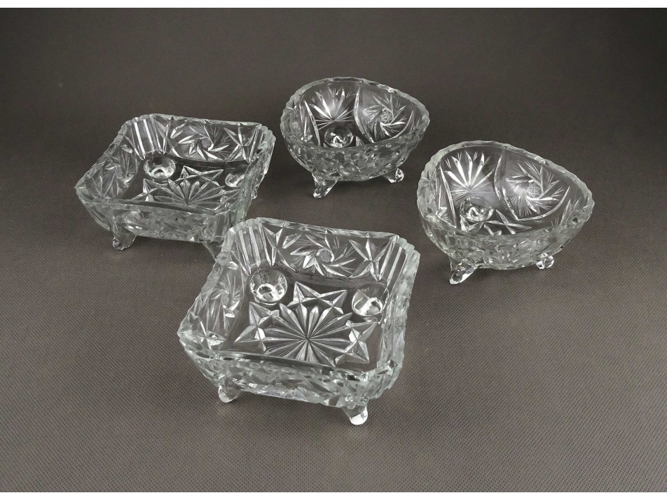 Régi csiszoltüveg lábas asztali kínáló tálka szett 4 darab
