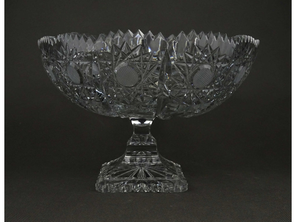 Nagyméretű, csiszolt kristály talpas asztalközép, kínáló tál 29.5 cm
