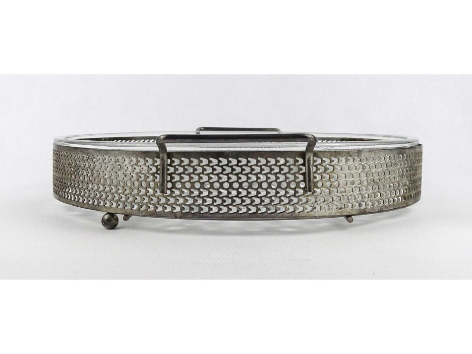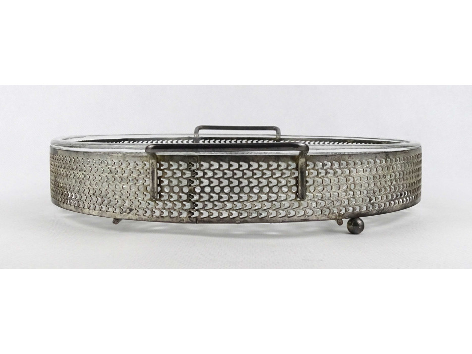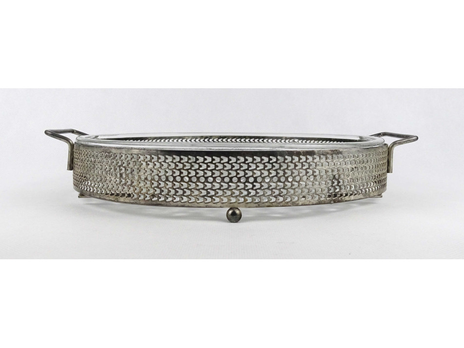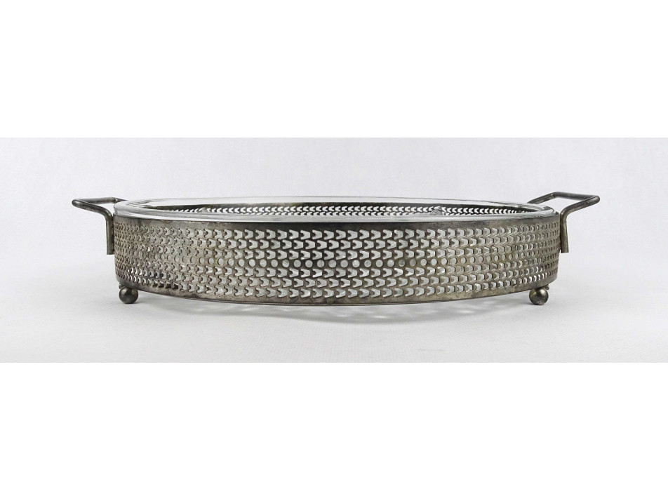 Régi fém keretes osztott üveg asztalközép kínáló tál 25.5 cm